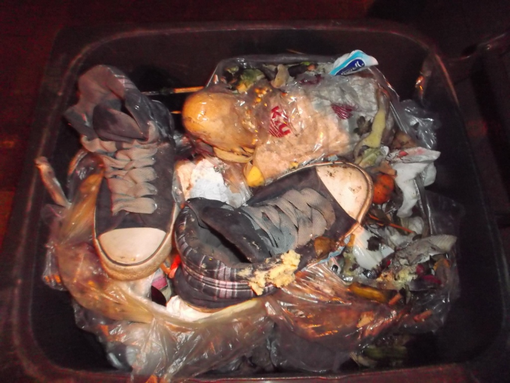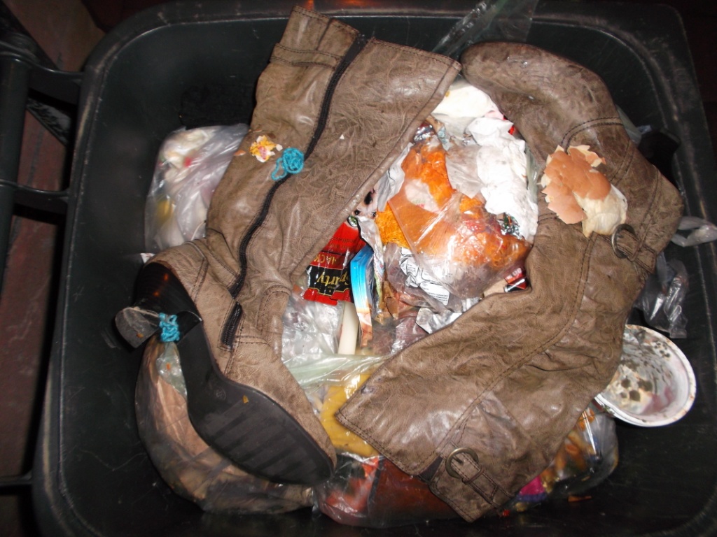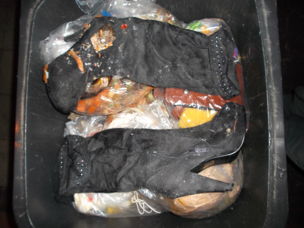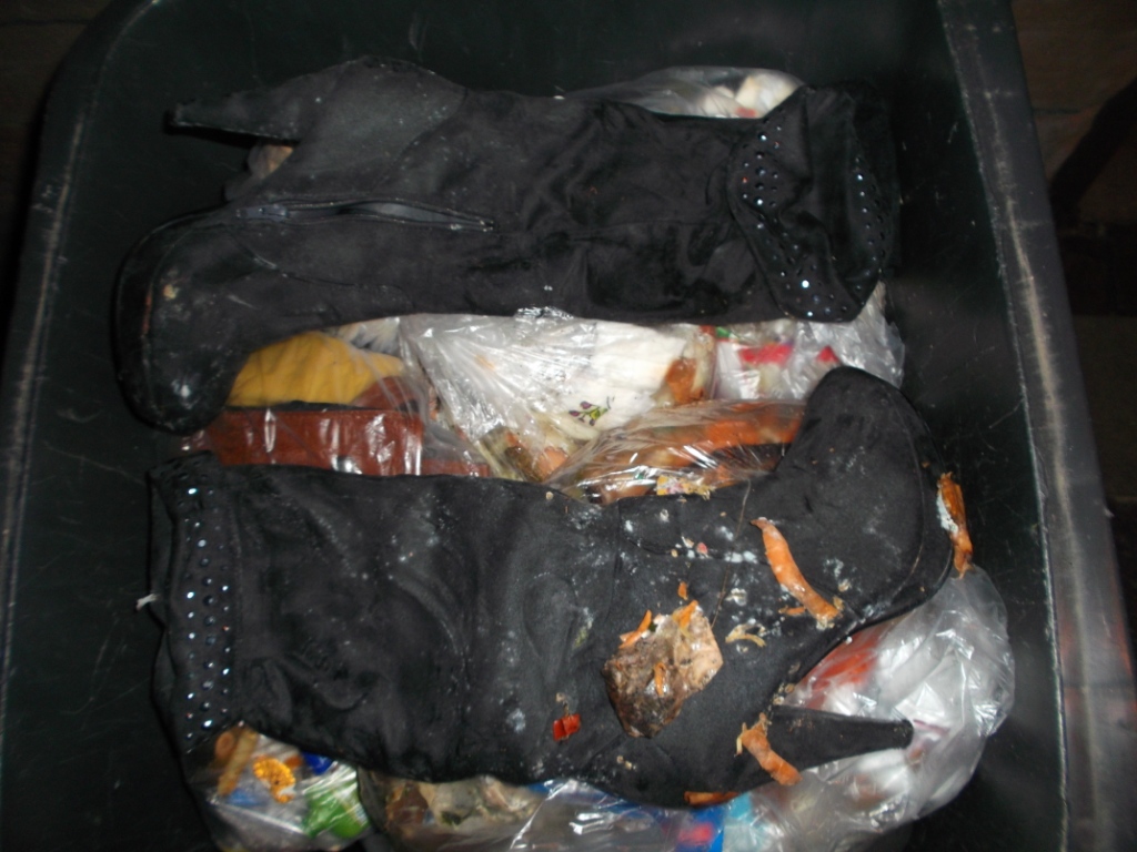 Vielleicht kennt ihr das auch: Bei vielen Leuten in der Wohngemeinschaft wird einer verdonnert, den Müll runter zu bringen. Blöd nur, dass Laura gezwungen wurde, aus gerechnet den Küchenmüllbeutel mit ihren heißgeliebten und daher auch totgelatschten Boxerstiefelchen zur Mülltonne zu bringen. Genau konnte ich es nicht rekonstruieren, aber Tatsache ist, dass dieser prall volle Küchenmüllbeutel erst nach einem Monat