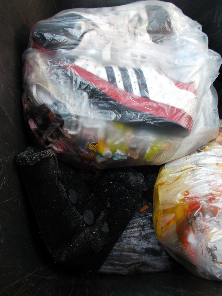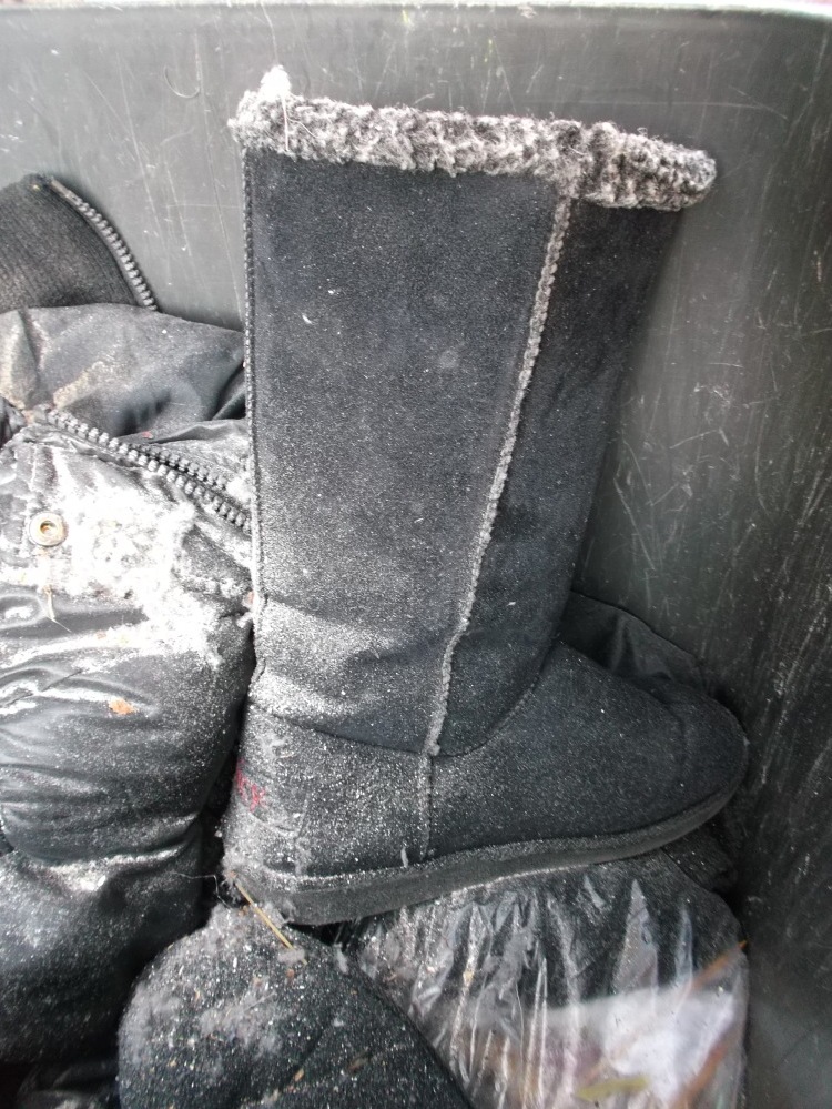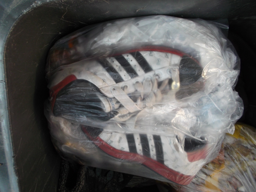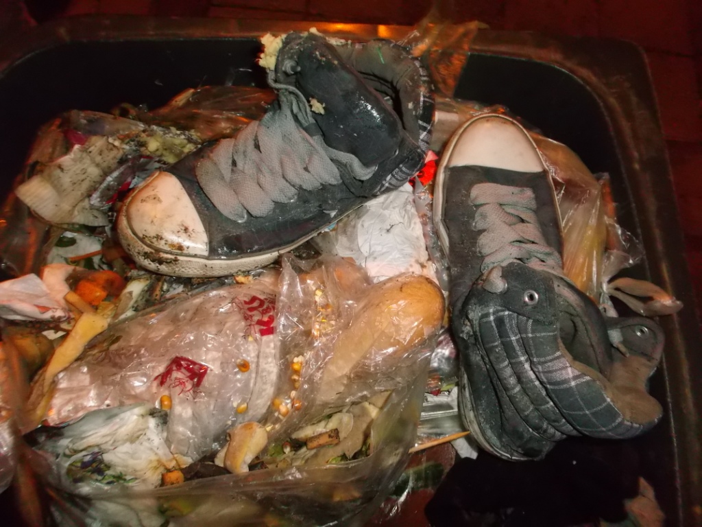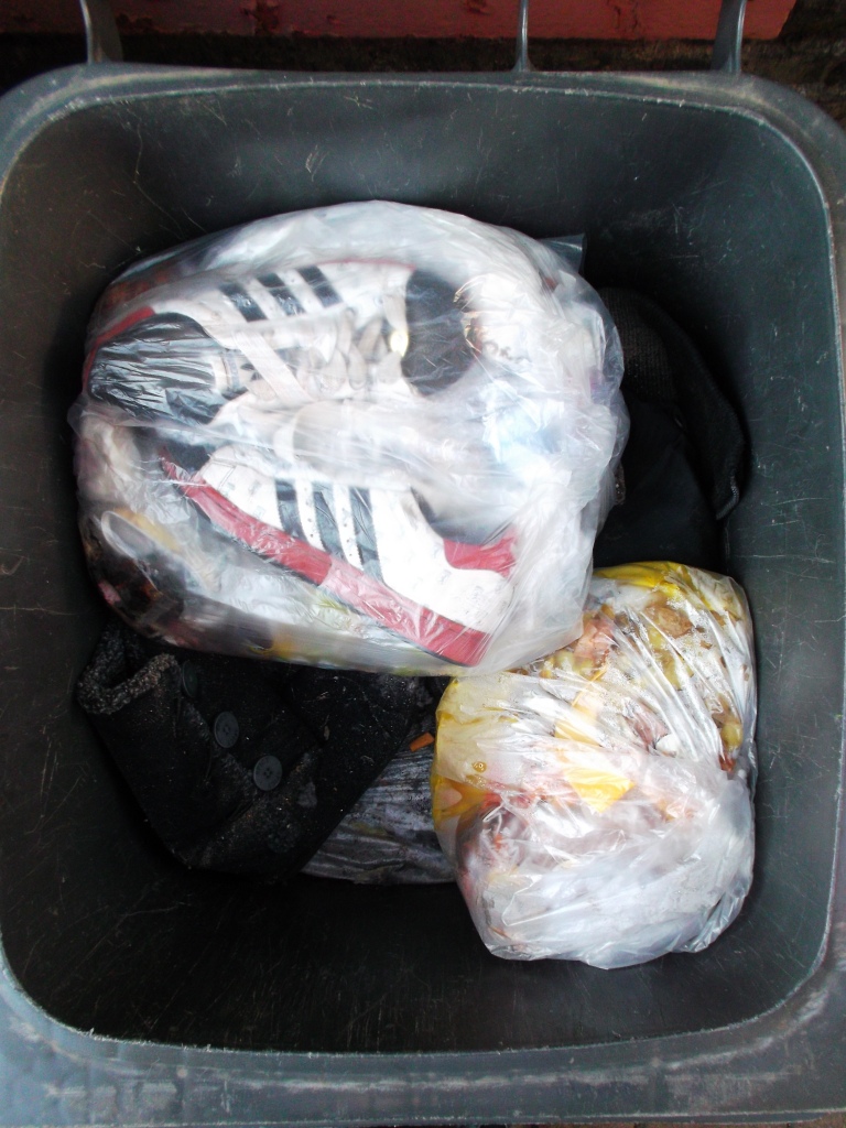 Vielleicht kennt ihr das auch: Bei vielen Leuten in der Wohngemeinschaft wird einer verdonnert, den Müll runter zu bringen. Blöd nur, dass Laura gezwungen wurde, aus gerechnet den Küchenmüllbeutel mit ihren heißgeliebten und daher auch totgelatschten Boxerstiefelchen zur Mülltonne zu bringen. Genau konnte ich es nicht rekonstruieren, aber Tatsache ist, dass dieser prall volle Küchenmüllbeutel erst nach einem Monat