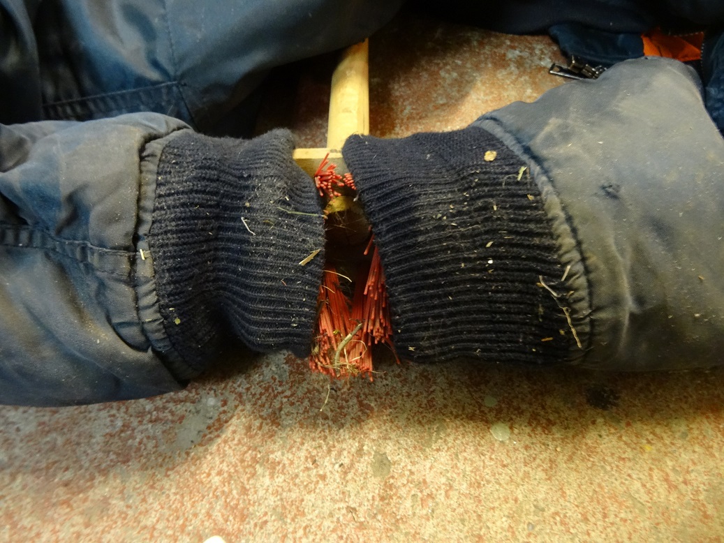 der Besen ist nich hart genug, da muss was anderes her.mal sehen obs dem Lappen bekommt