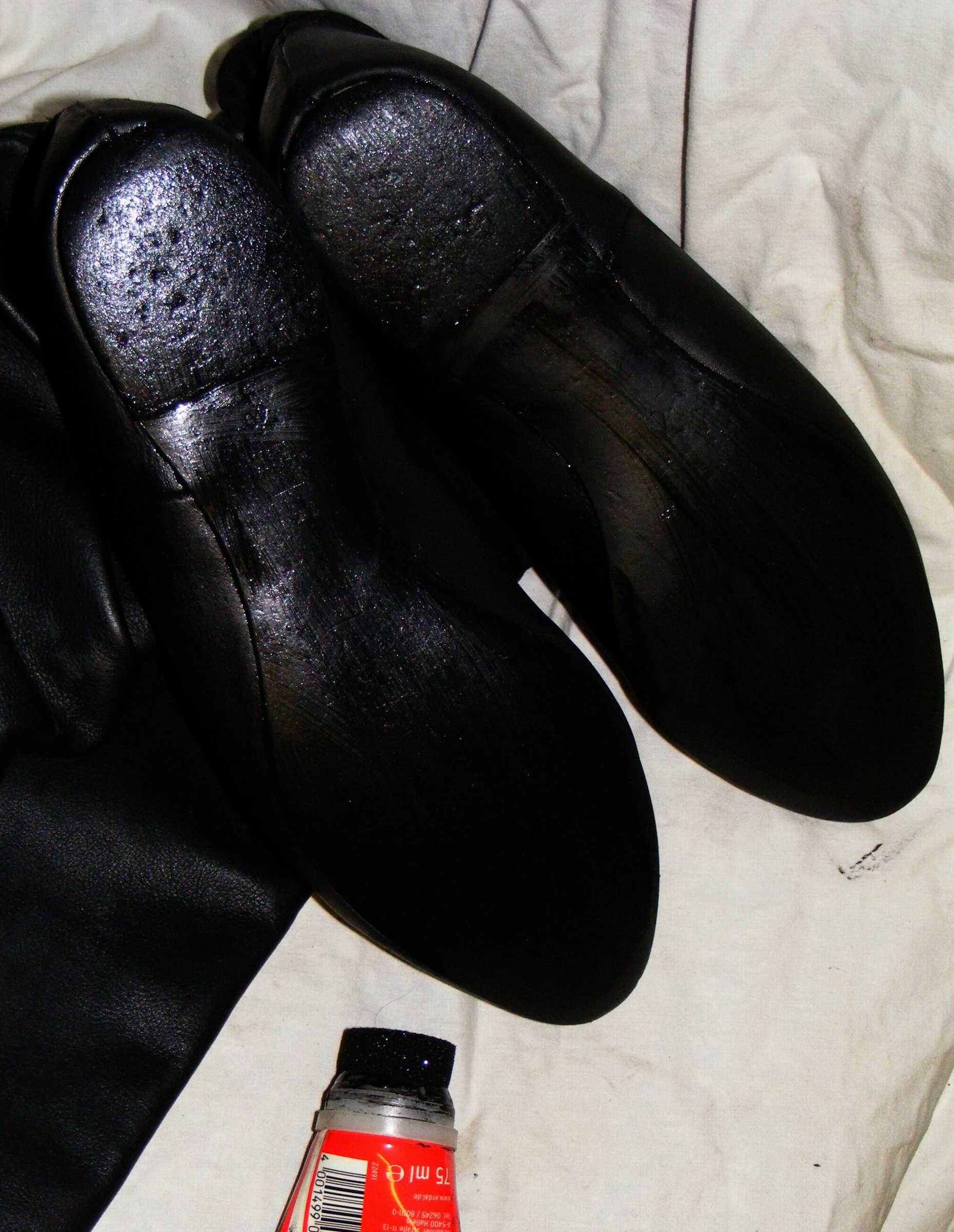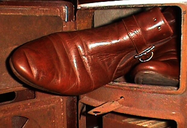 Was empfindet der/die Gummistiefelfeti beim Anblick seiner/ihrer falten- und charakterlosen Lieblinge, die getragen genauso aussehen, wie ungetragen? Da gibt´s nur sauber oder dreckig, ganz oder kaputt. Wo ist die künstlerische Einzigartigkeit, der bei Lederschuhen verewigten Fuß- und Zehenform des Trägers/der Trägerin?
