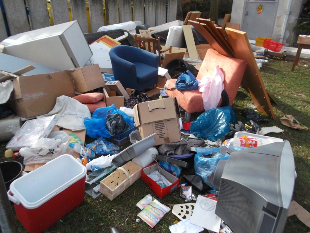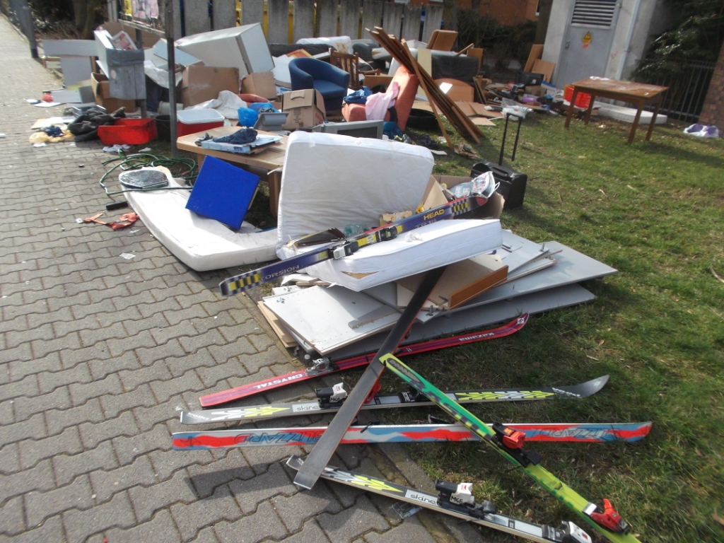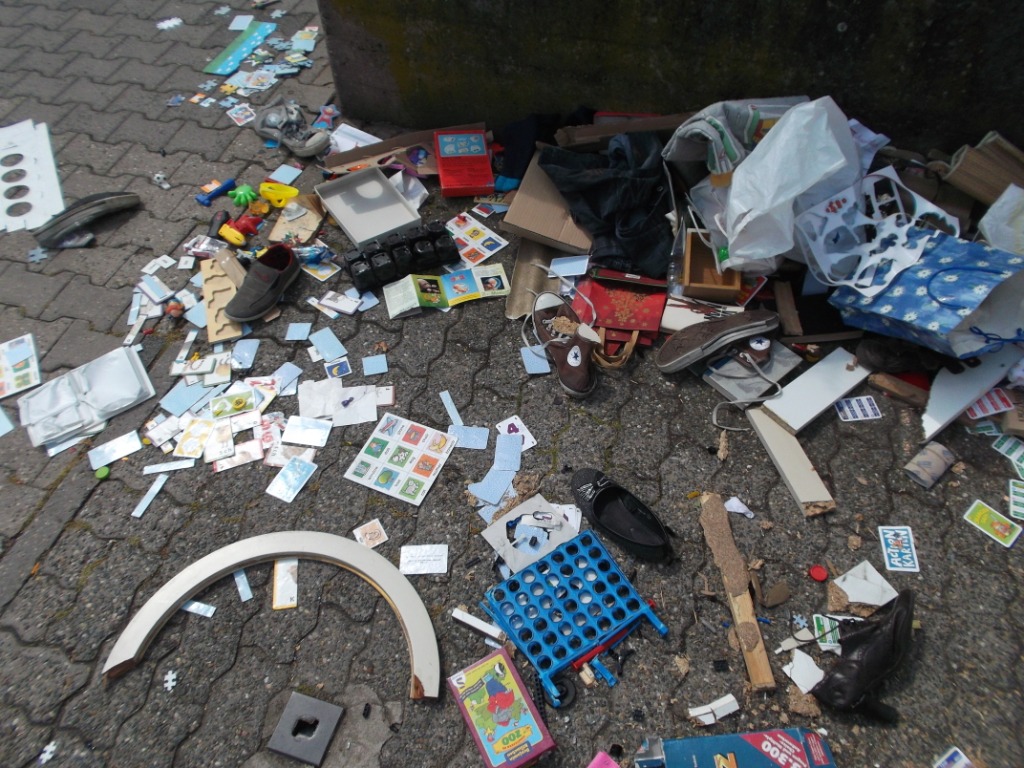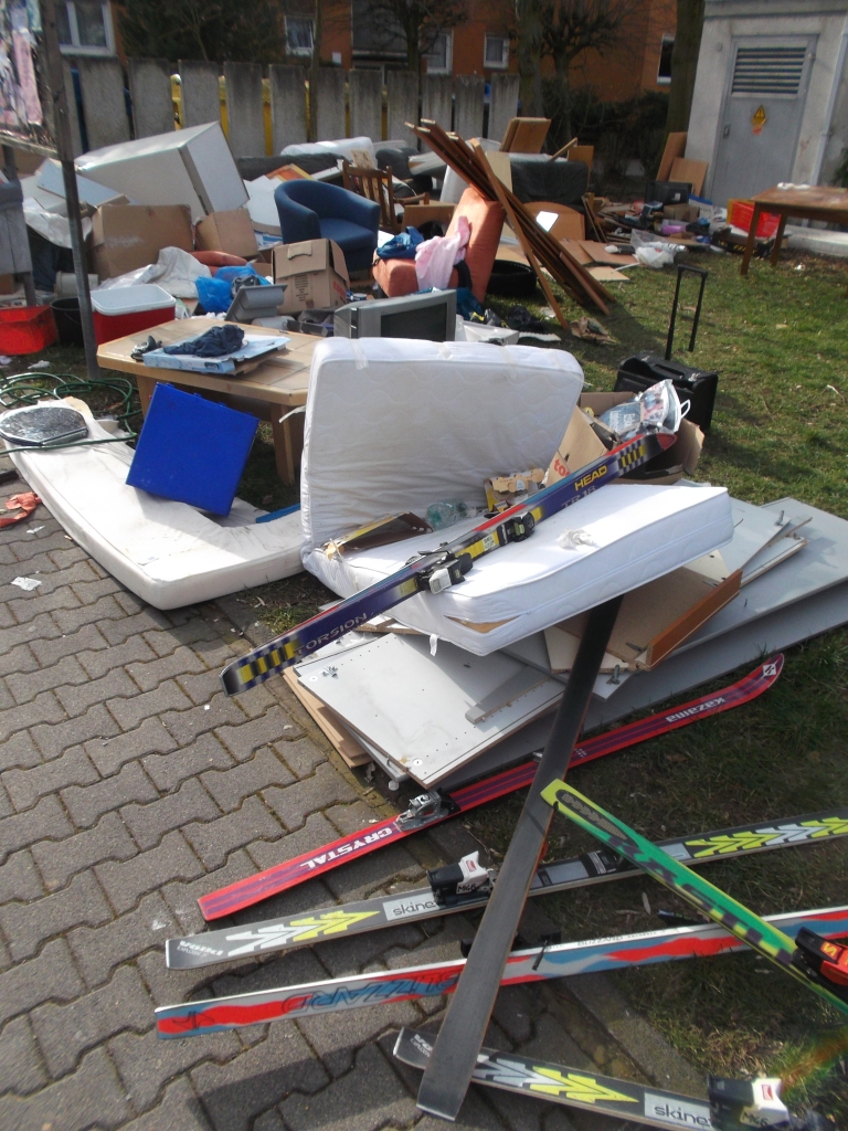 Am benachbarten Wohnblock hatte die Sperrmüllabfuhr ein Schlachtfeld hinterlassen: