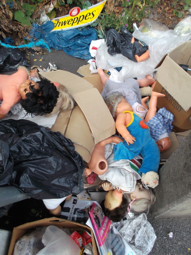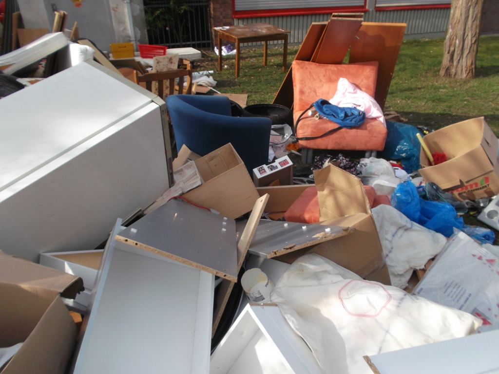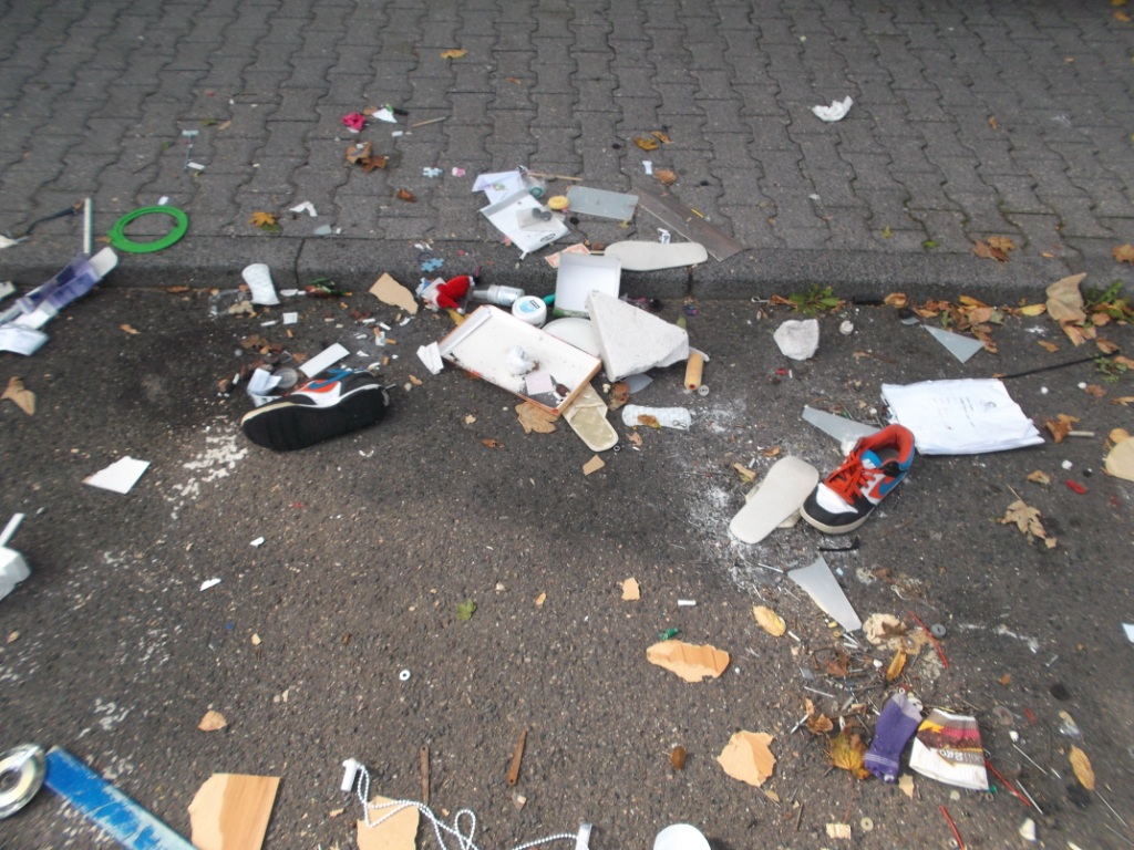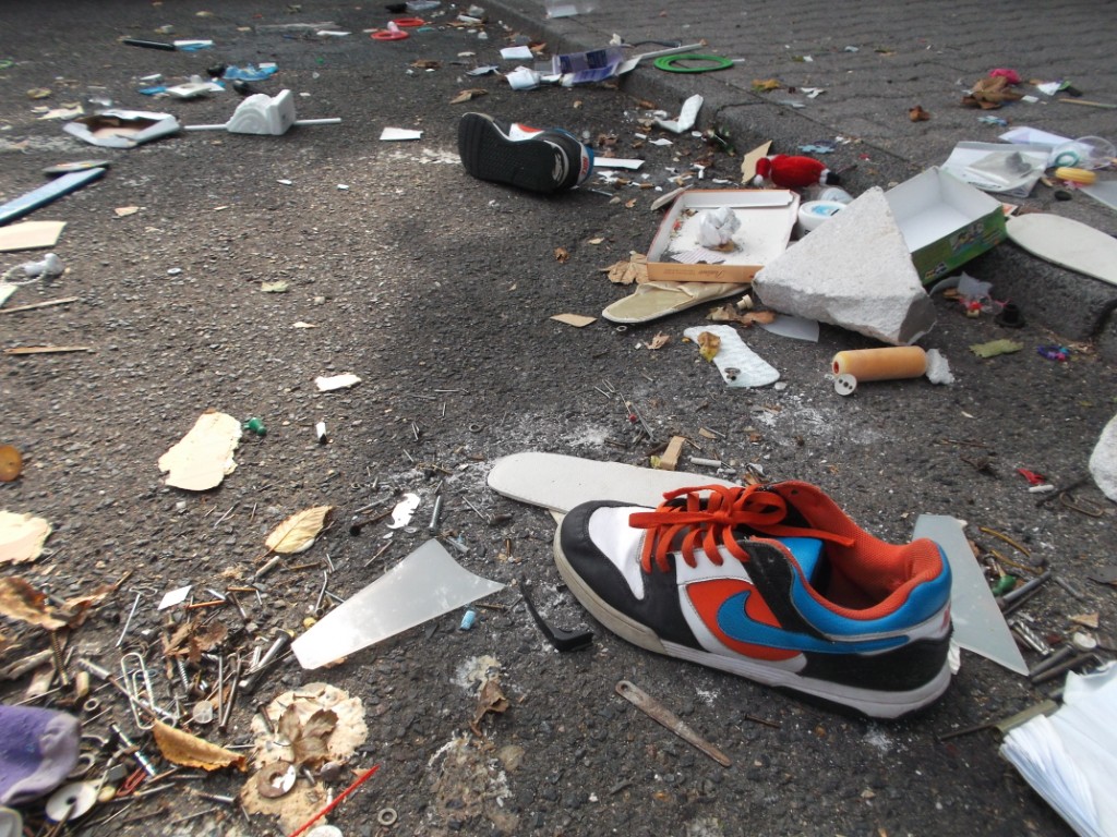Am benachbarten Wohnblock hatte die Sperrmüllabfuhr ein Schlachtfeld hinterlassen: