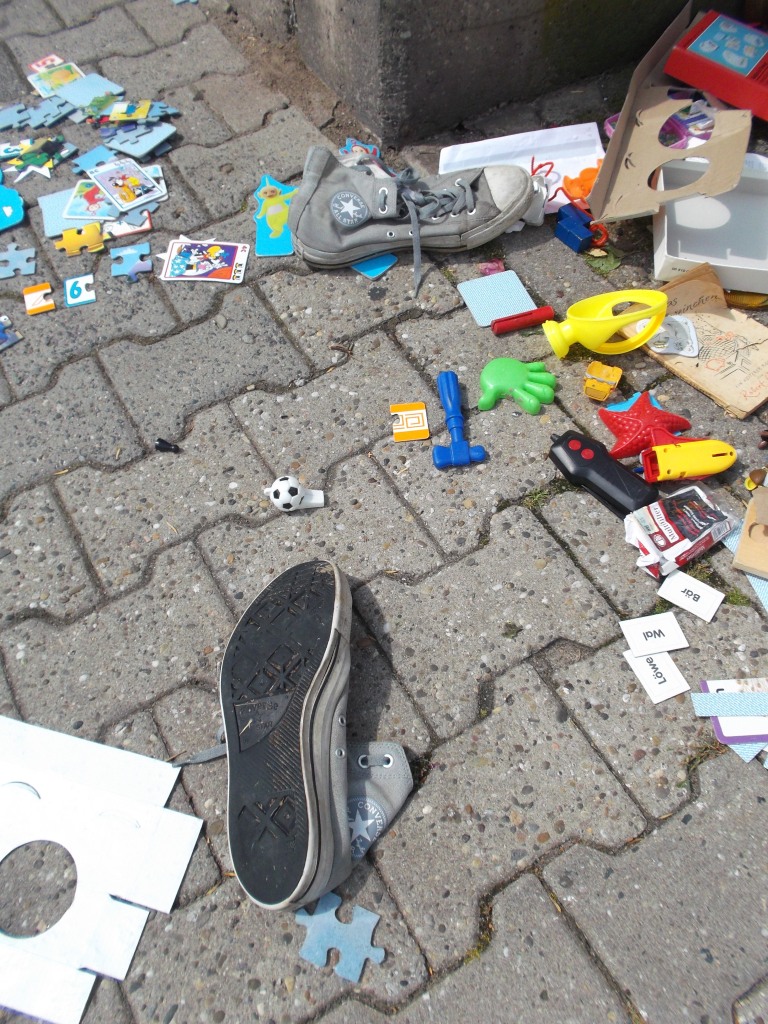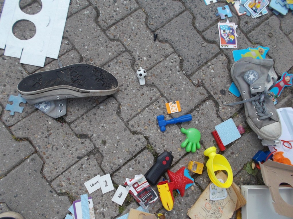 Nike-Fakes, süße Mädels-Ballerinas, die Hochfrontpumps wohl der Mutter und womöglich die Chucks des Sohnes? Alle mussten zum Sperrmüll!