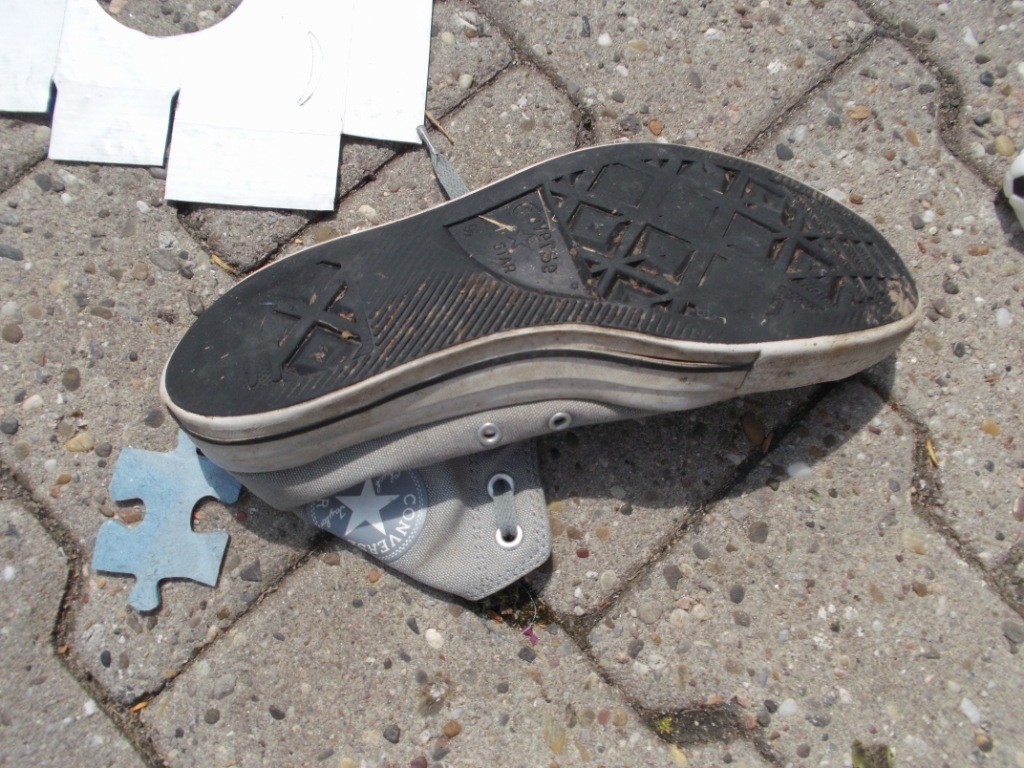 Beim Laden des Sperrmülls müssen die Müllmänner wohl über die weichgelatschten Pumas achtlos mit ihren derben Arbeitsschuhen drübergetreten sein.