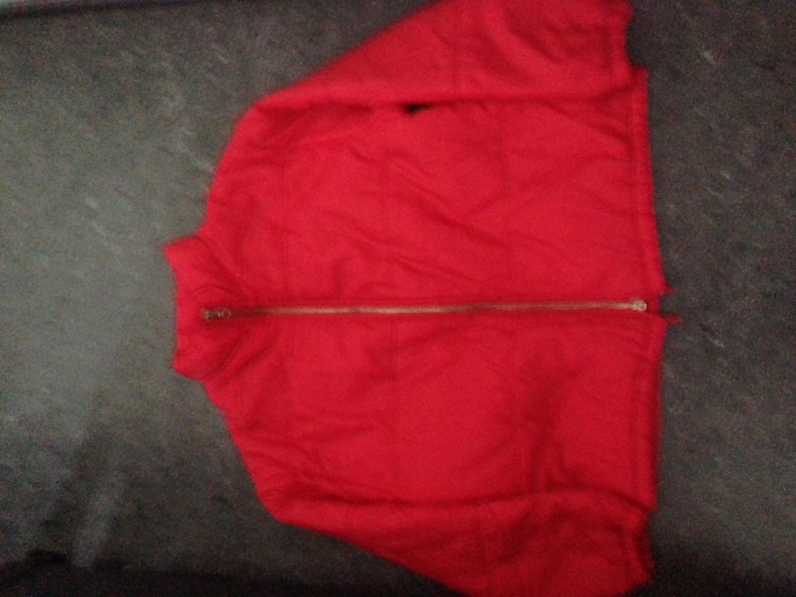 Am unteren teil des Rückens ist ein leichter Riss, das war wohl der Grund weshalb Mutti Töchterchens Jacke entsorgen wollte.