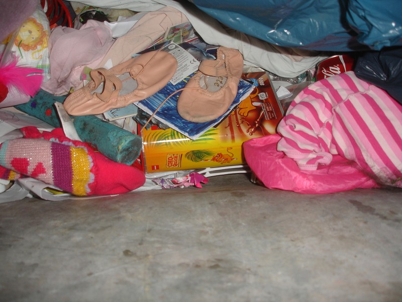 eine weitere Tasche mit reingestopften Stoffstücken, aber leider keinen Schuhen :(