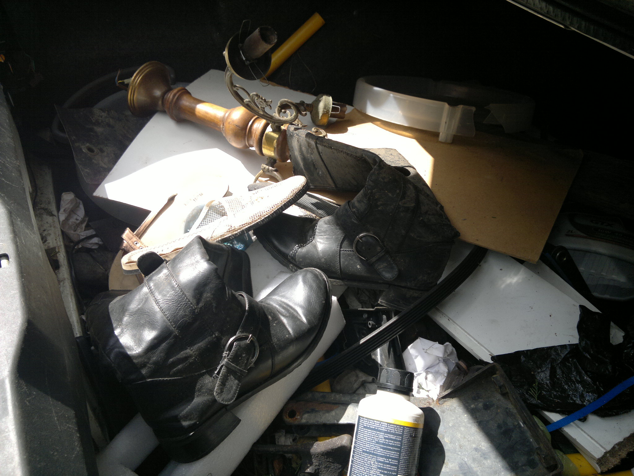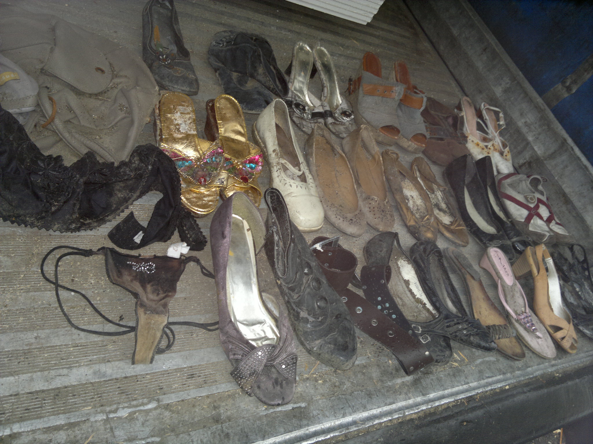 bonjour , j ai récupéré pour un amis toutes les sandall et autres sur le terrain vague, un sac entier remplis de chaussure et un soutien gorge plus un string une ceinture en cuir et un sac a mains en cuir gris 8-)