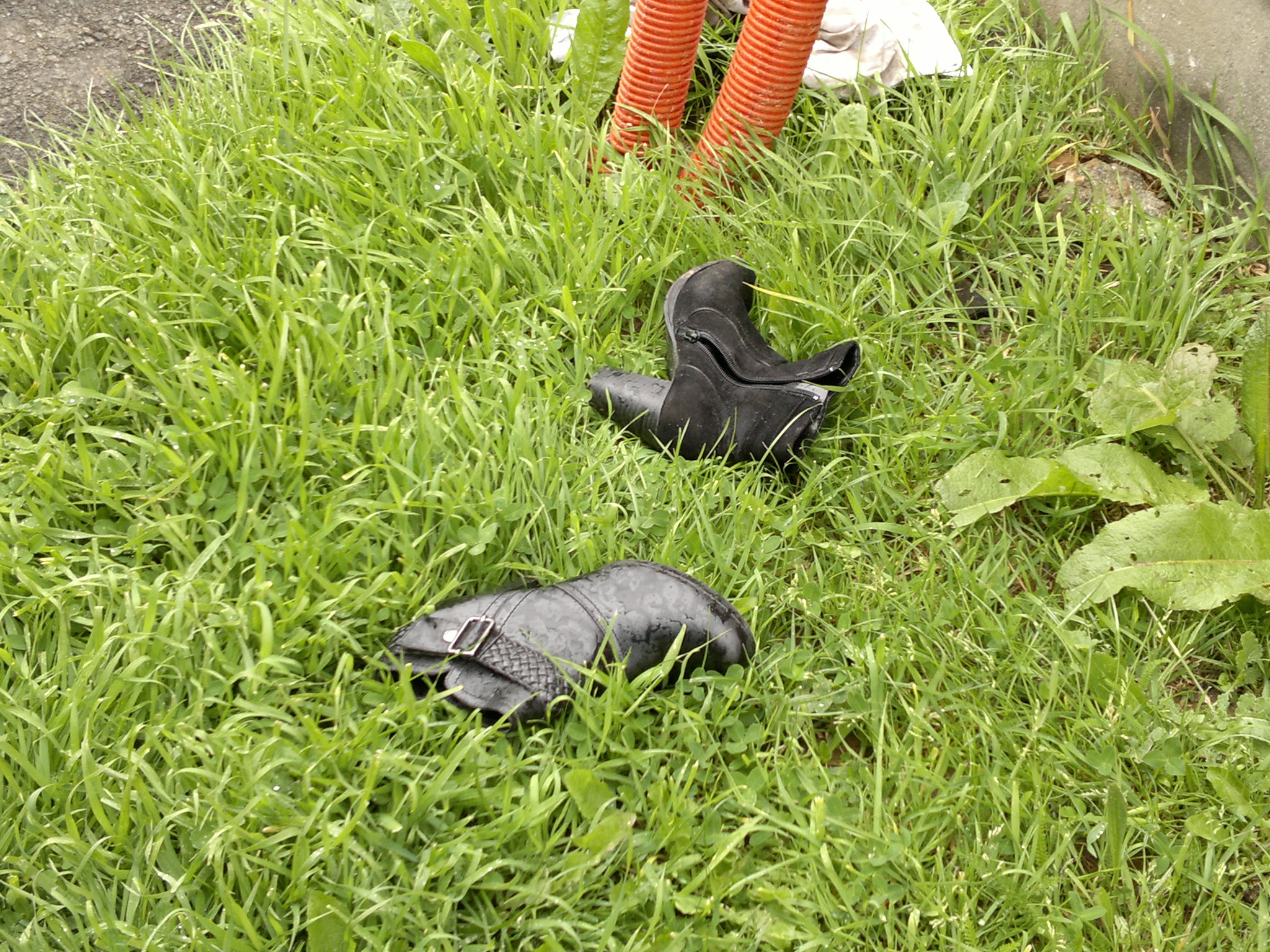 Aujourd'hui, avec nous a également créé une décharge sauvage. Lorsque j'ai pris la photo était encore une paire de chaussures ont disparu, ce qui au début de cette dabeilag matin. Les chaussures étaient bien jusqu'à maintenant pour l'ancien moniteur couché là pendant un certain temps. Les chaussures ont l'air comme si elles y sont offerts par le propriétaire précédent, littéralement, comme une présentation. Semble bien fonctionner, pour l'instant qu'une seule paire de chaussures parce que ... :P