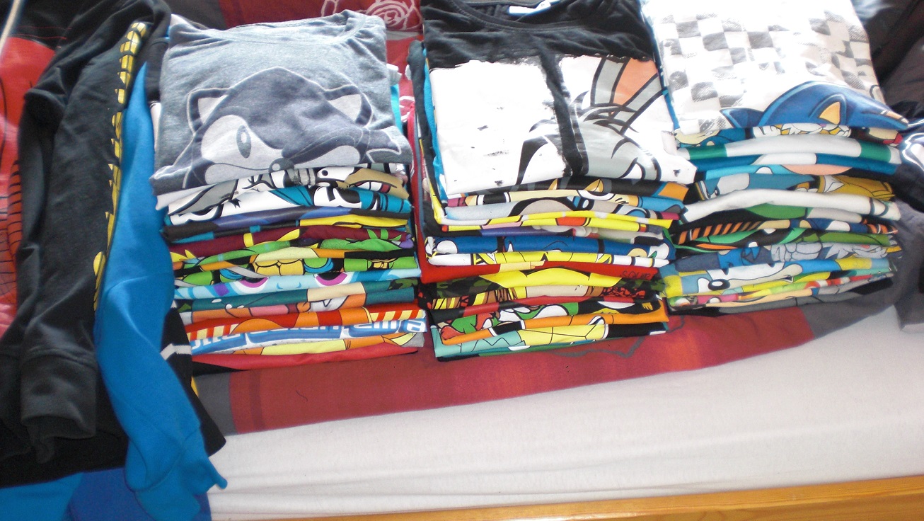 Und nur mal eine kleine Rechnung. Die Shirts sind zu 80% neu und ungetragen. Die meisten kommen aus Amerika und kosten mit Versand an die 30€ das Stück.