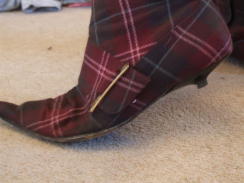 Da ich selbst nicht unbedingt auf High Heels stehe, sondern eher Kittenheels oder Queenie-Absätze mag und diese Musterung mir auch gut gefällt, werden bei solchen Schuhe meine "Sinne" eh schon wach. Die hohen Schäfte finde ich eh geil und auch der schon sehr getragene Zustand. Auf Schuhe und Stiefel mit Mittelnaht stehe ich eh und dann noch diese eleganten Ziernadeln. Ein schon sehr schottisches Design; aber noch existiert ja noch das Vereinigte Königreich.