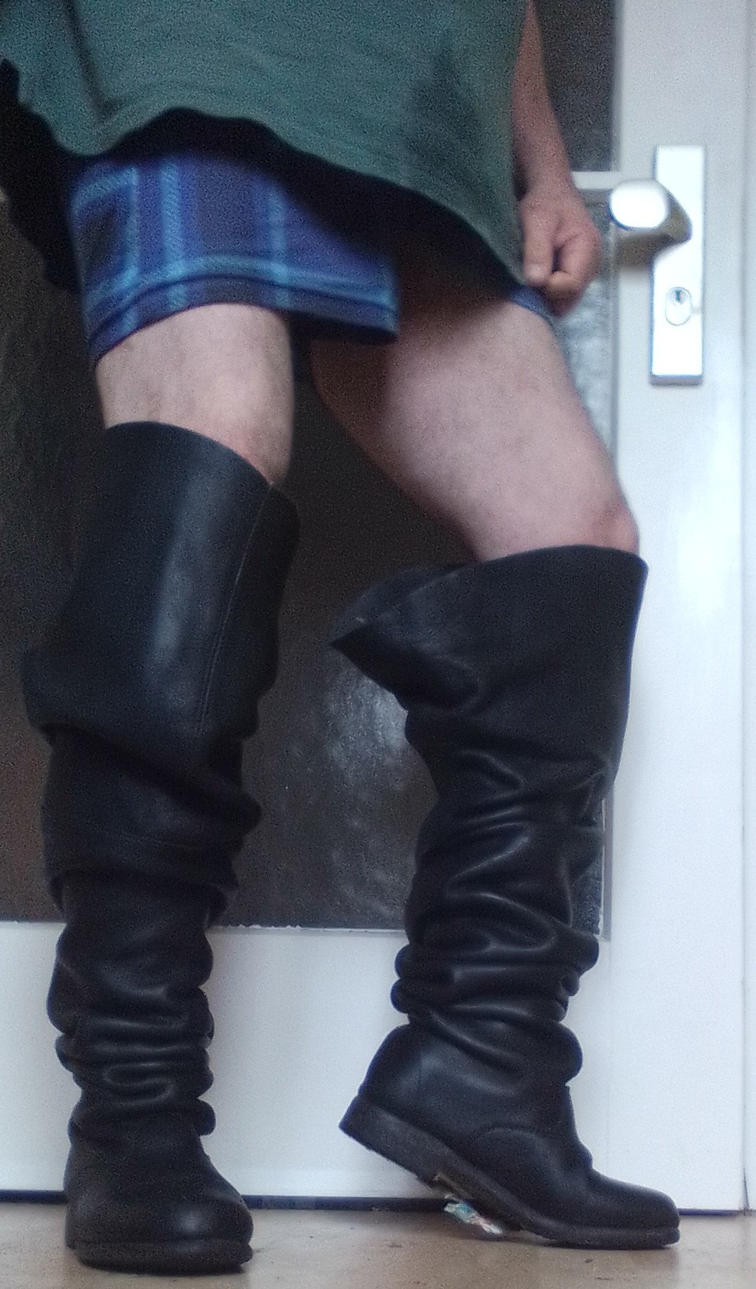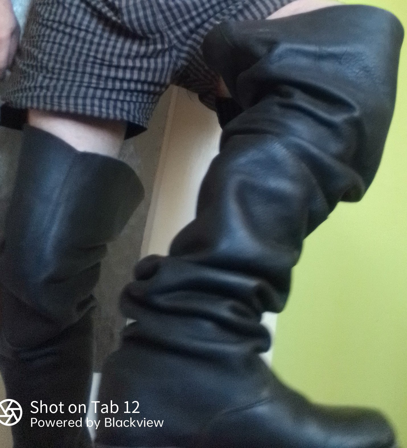 Durch ständiges tragen und besamen ist das Leder schon schön weich geworden und die weiten Schäfte rutschen langsam herunter bis auf Kniehöhe..