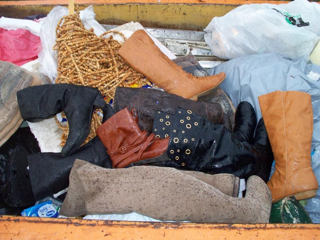 - Hier lagen nun Jessicas Stiefel und warteten nun übers Wochenende auf ihre allerletzte sehr kurze Fahrt hoch auf die Müllkippe.