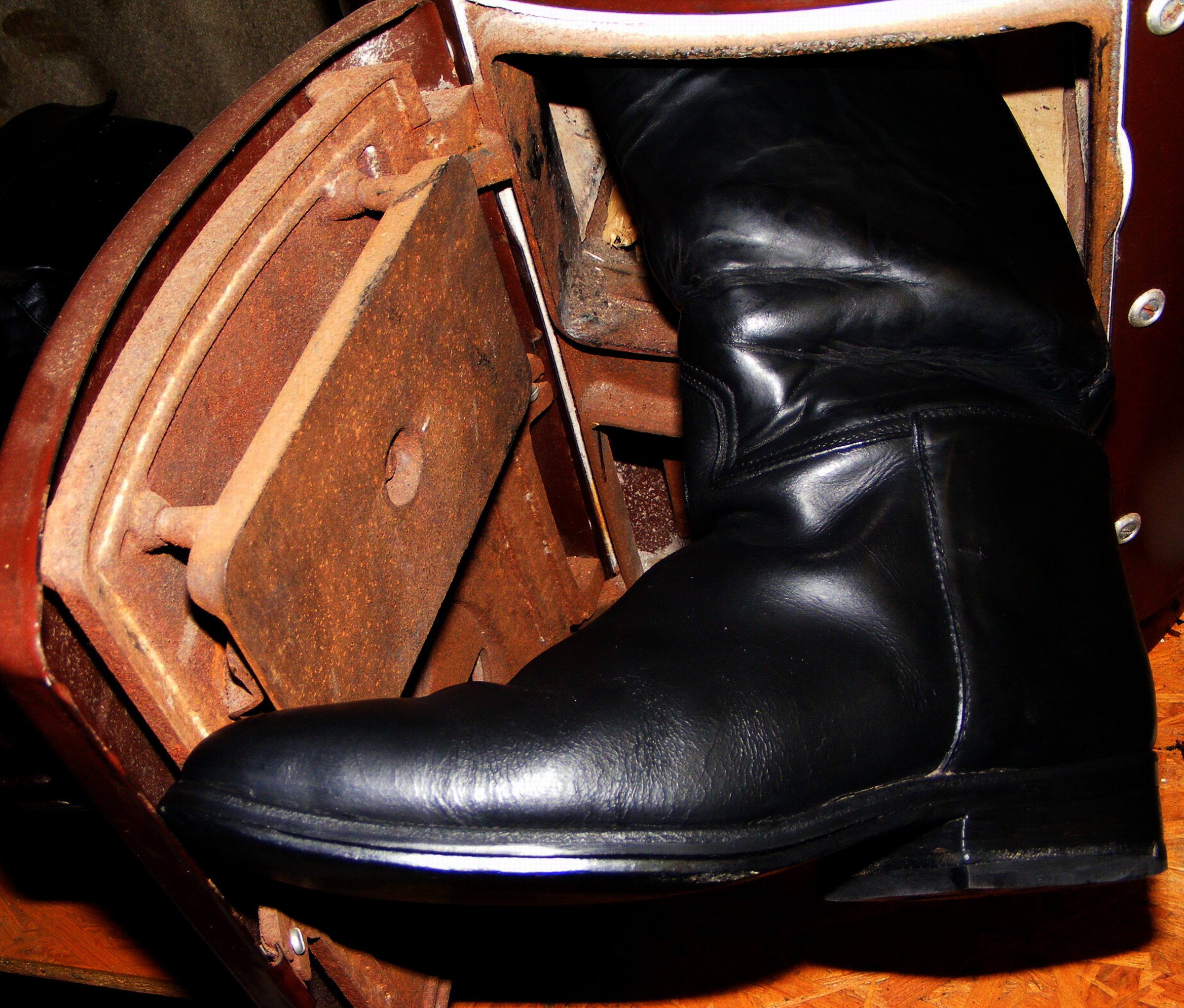Zurück zu uns "Fetis". Jetzt stehe ich persönlich auf gebrauchte Schuhe, insbesondere Stiefel, weil ja gerade diese erst durch den Gebrauch richtig "schön" aussehen. Mal ganz davon abgesehen, daß bereits getragene Schuhe die allgemein bekannte Unannehmlichkeit der "Blasen" fast völlig ausschließen.