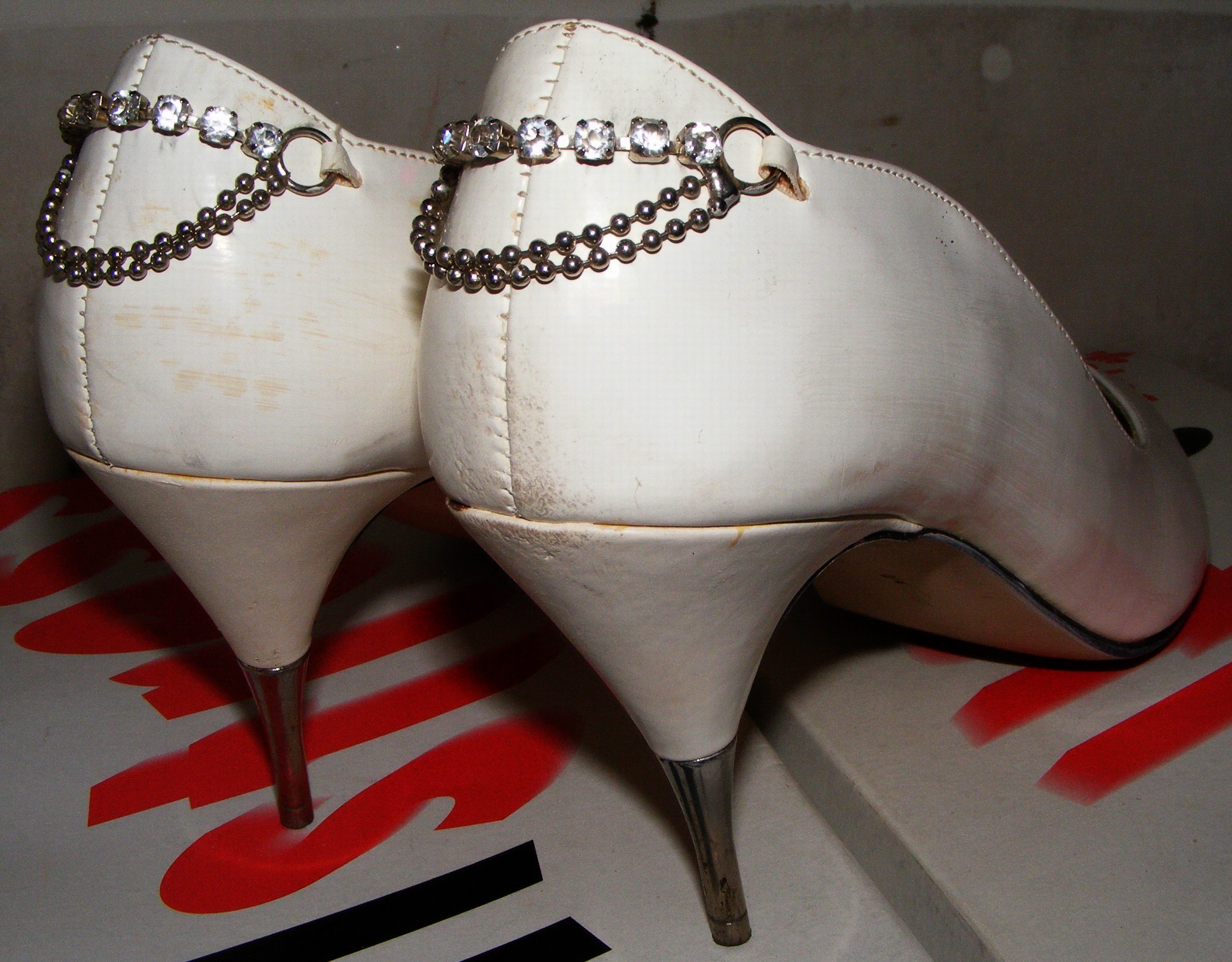 Für eventuelle Partyeinsätze im Haus habe ich noch solch ein baugleiches Paar Vanessas mit (üblichen) bezogenen Absätzen und Gummibelägen.