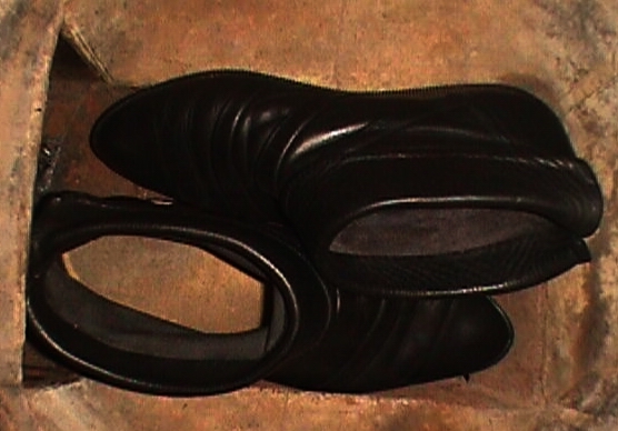 Und, so ist es dann eben auch beim Verbrennen: Ein Schuh/Stiefel hat beim Einführen in den Ofen bzw. beim Auflegen auf Kamin- oder Lagerfeuer immer noch seine Form, schrumpft, verzerrt, streckt sich, bis er deutlich sichtbar in meist verschiedenfarbigen Flammen zerfällt, Metallteile schmelzen oder gar gleißend verbrennen ...