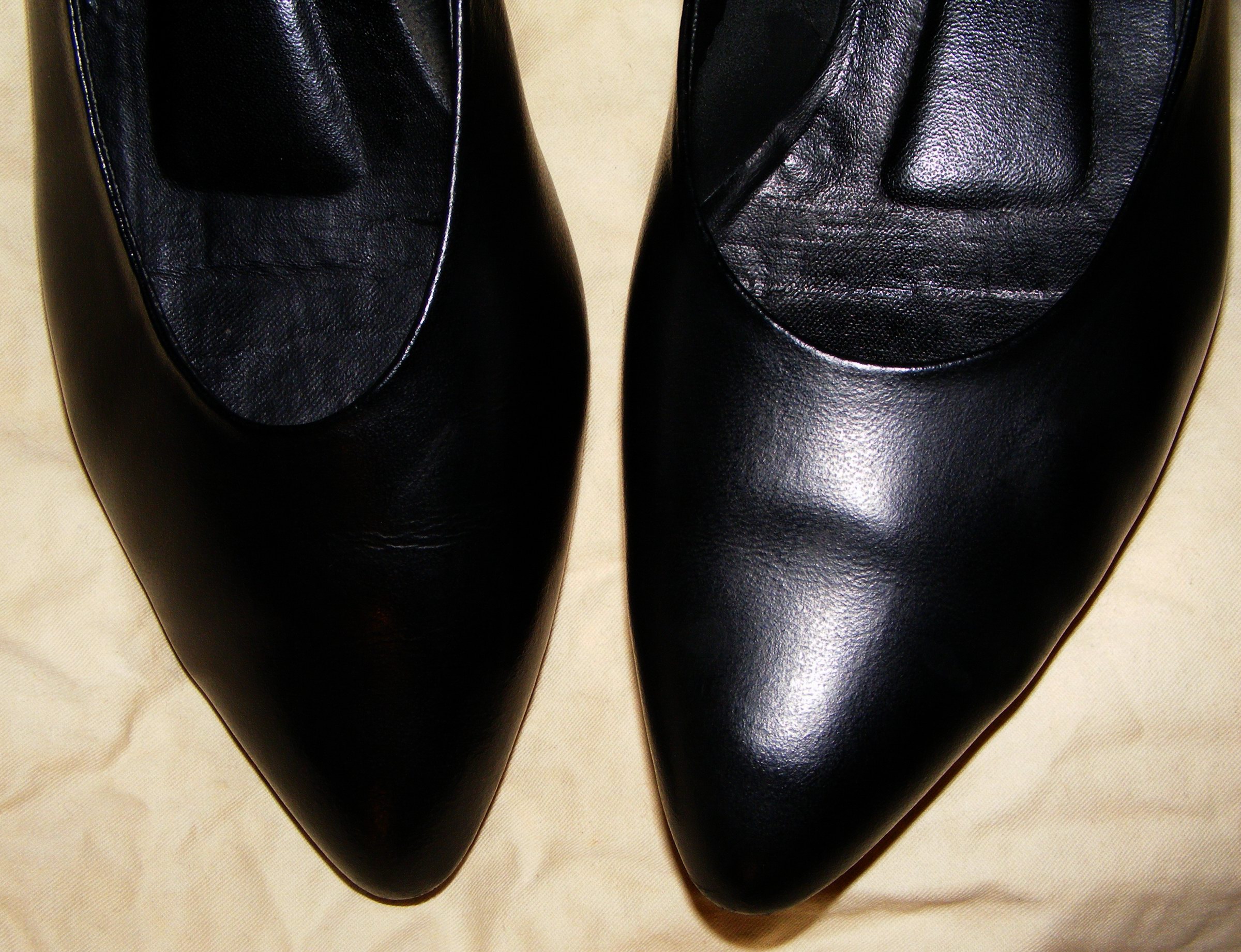 Zu Hause angekommen reinigte ich die Schuhe gründlich, entfernte die bröseligen Absatzbeläge und ersetzte sie durch blanke Metallteile. Mit der "Inventarnummer" 479 nahm ich sie im meinen Tragebestand erhaltenswerter Pumps auf! :)