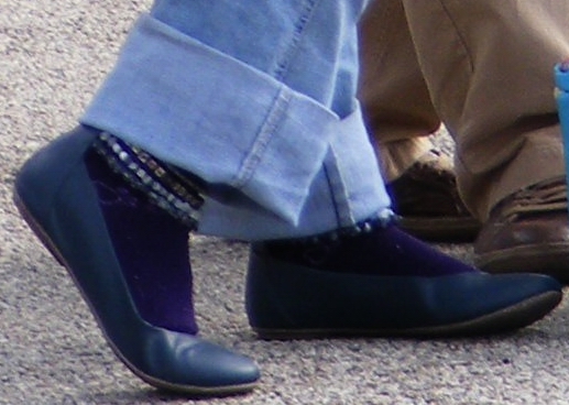 Sie trägt nicht nur häßliche Sneakers, sondern auch andere abartige Kombinationen ...![]()