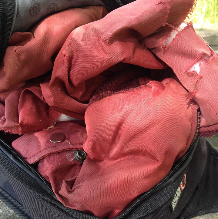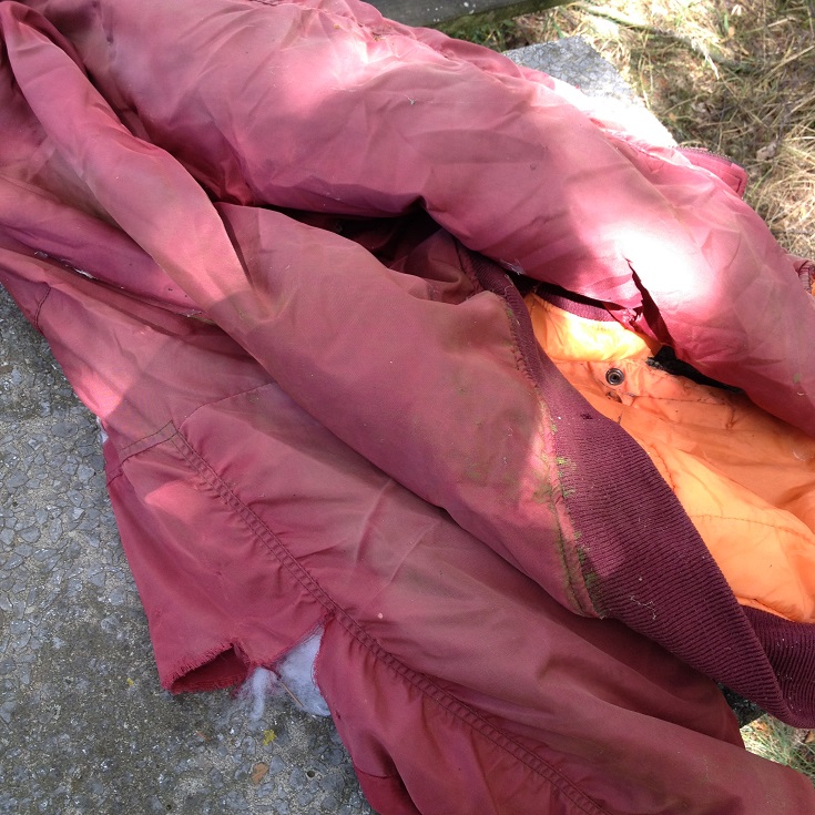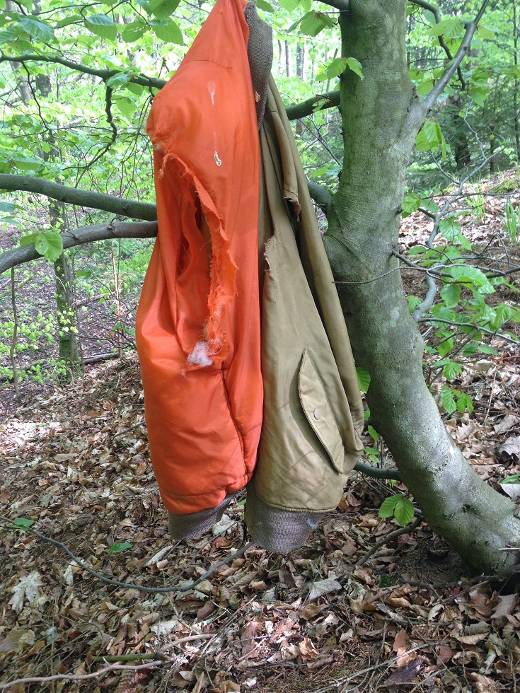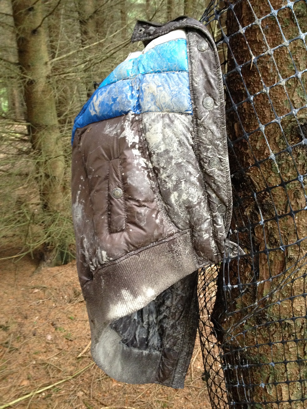 Sieht sehr schön aus, das Ding. Ein Regen und das isr wieder ab. Die Weste ist vom Flohmarkt, ich glaube hat 5 oder 8€ gekostet.