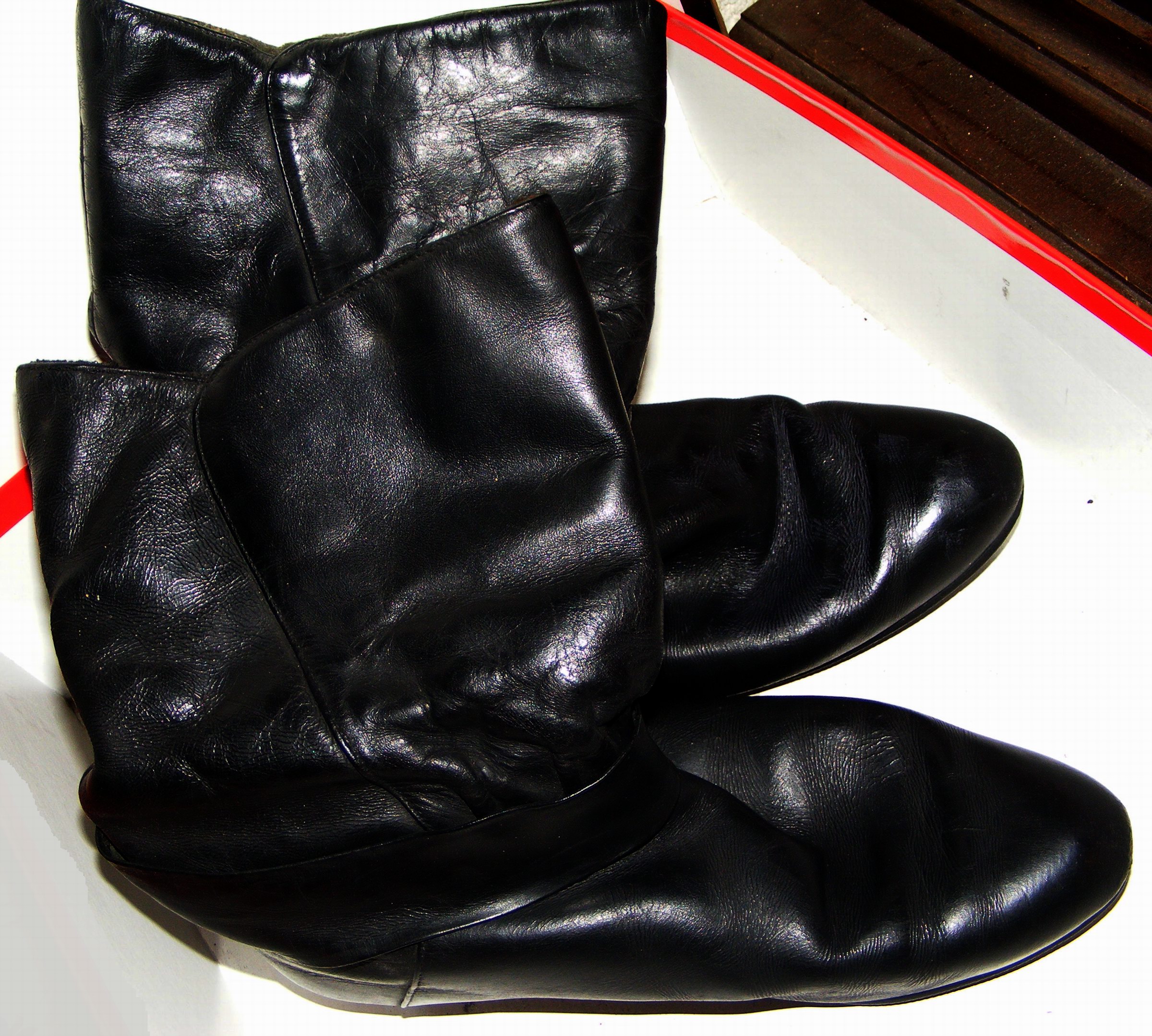 Lediglich drei Paar Leder-Schuhe in Größe 39 legte ich vorsichtshalber beiseite, bei denen eventuell die Gefahr bestand, daß sich meine helle Hose, wie auf diesem bekannten Bild, ein Wenig farblich verändern könnte, zumal auch mein Mann als "Hilfskoch" anwesend war.