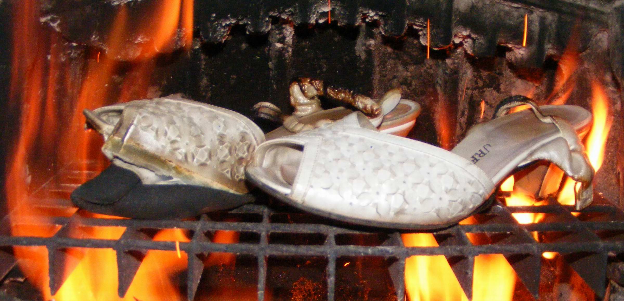 hallo, also Schuhe und Stiefel gehören in den Ofen und nicht auf den Grill. Dageben kommt gegrillte Kleidung ganz nett.
