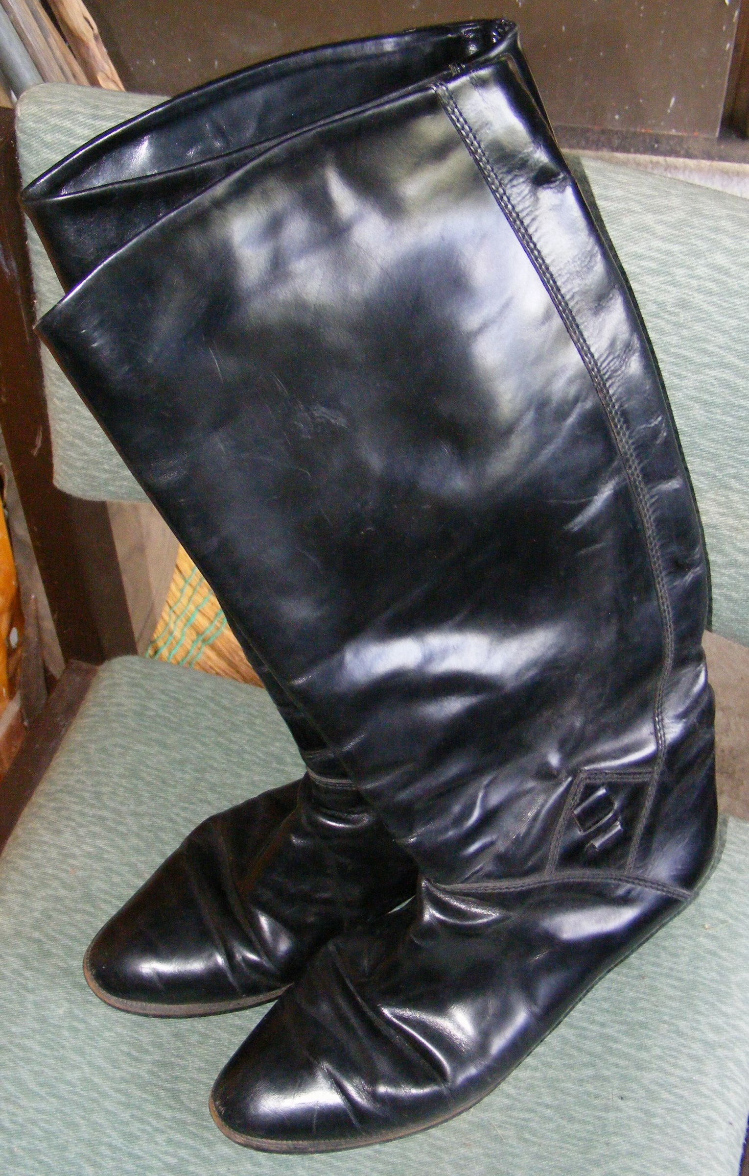 Na, wie gefallen euch diese Lackleder-Reitstiefel?