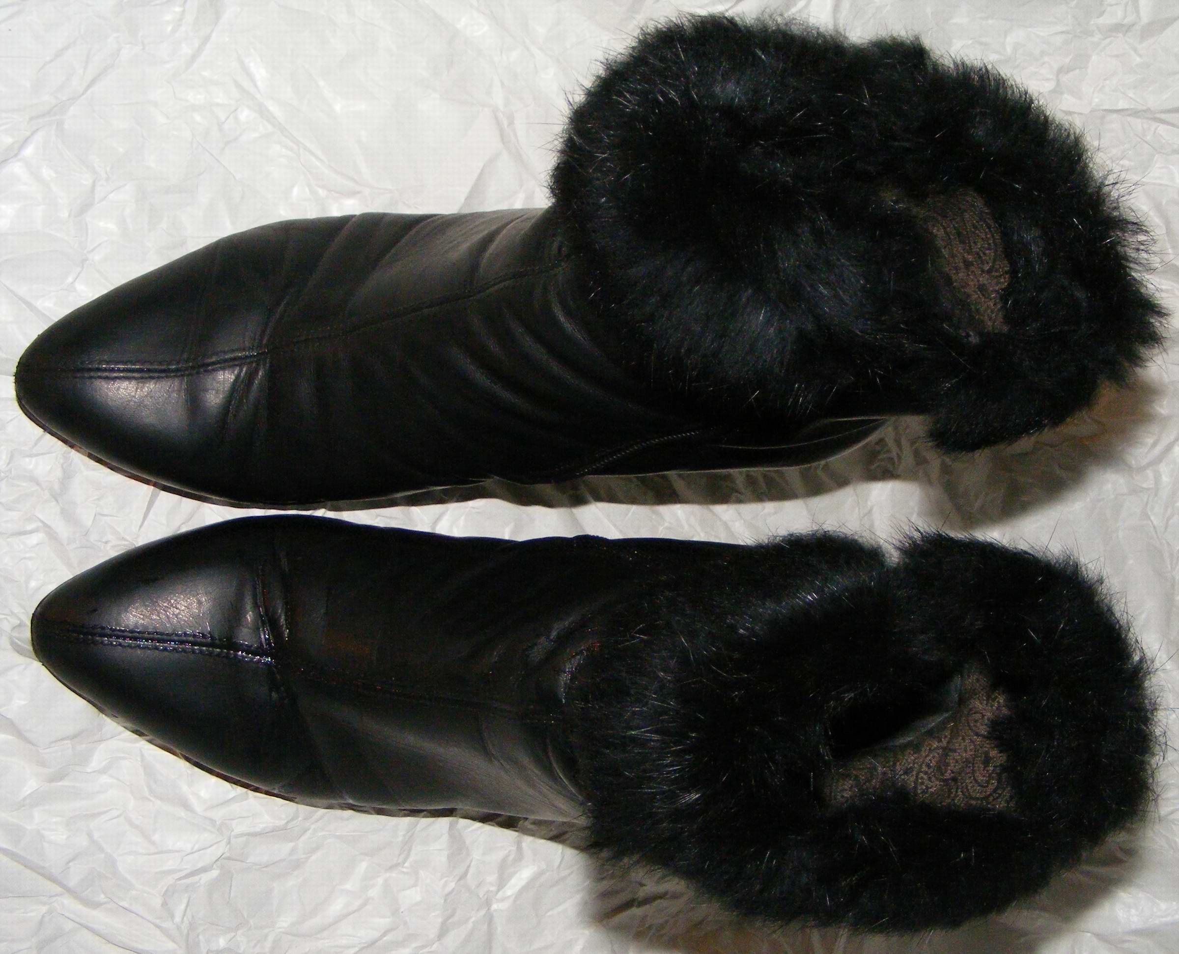 Meine Mutter hatte ein Paar schwarze mit einer längsverlaufenden Mittelnaht und einem Kragen aus Persianer Pelz. Die habe ich noch im Heizkessel brennen sehen und ich erinnere mich auch daran, dass das Feuer so richtig gebullert hat und ich die Feuerluke schließen musste, so stark war die Hitze.