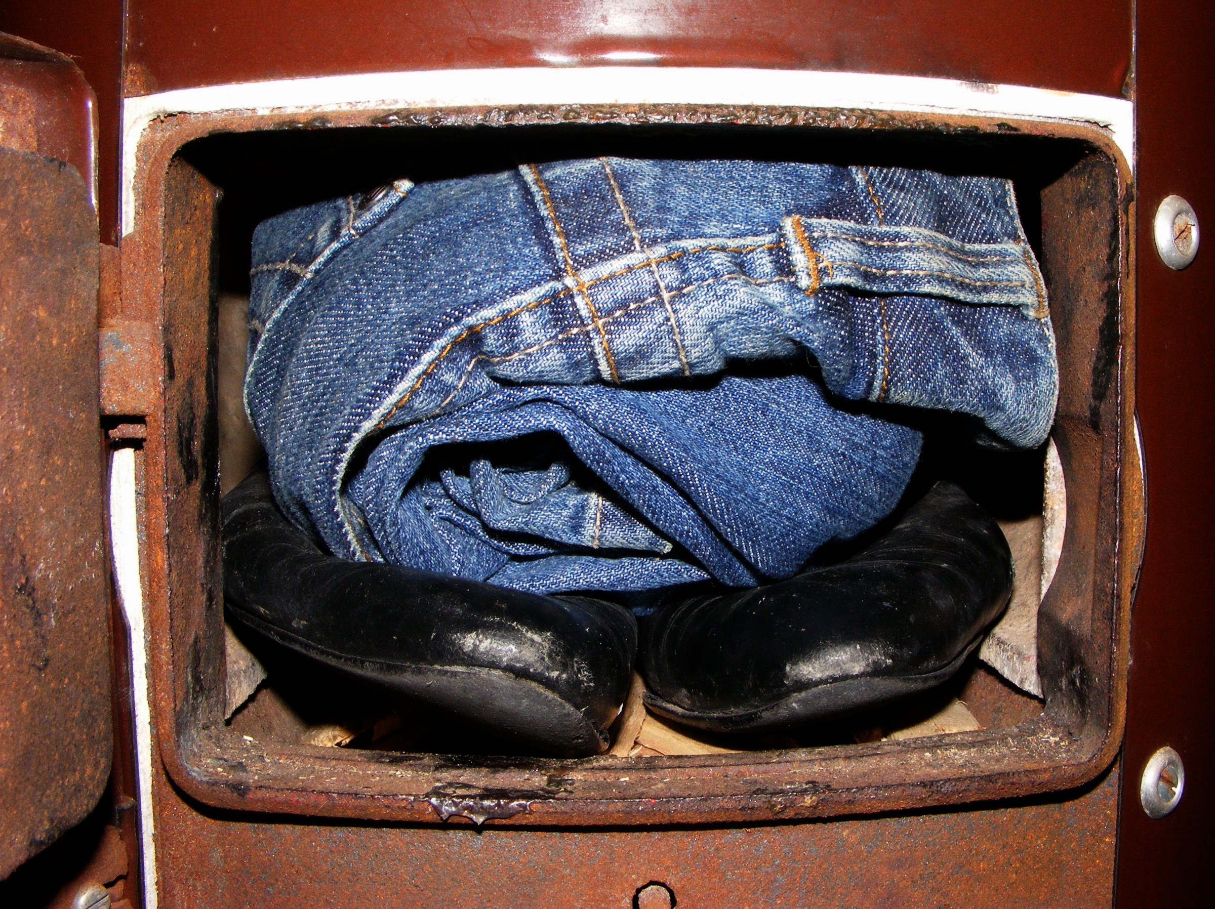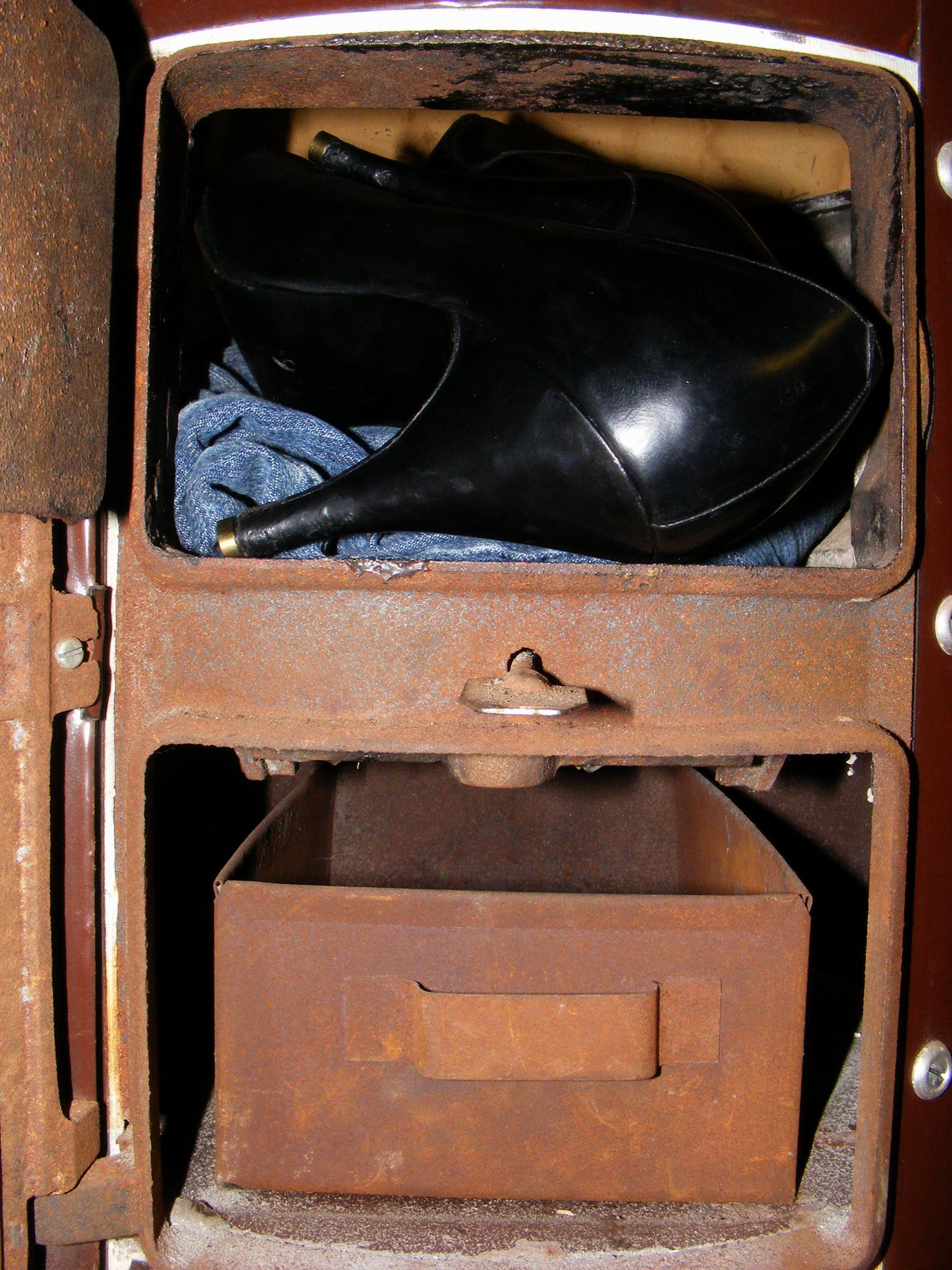 Deswegen haben wir auch die Brennkammer dieses Badeofens unter "Denkmalschutz" gestellt und dient mir seitdem als erregende "Fotokulisse" für Schuhe und evtl. andere geile Kleidungsstücke! :P
