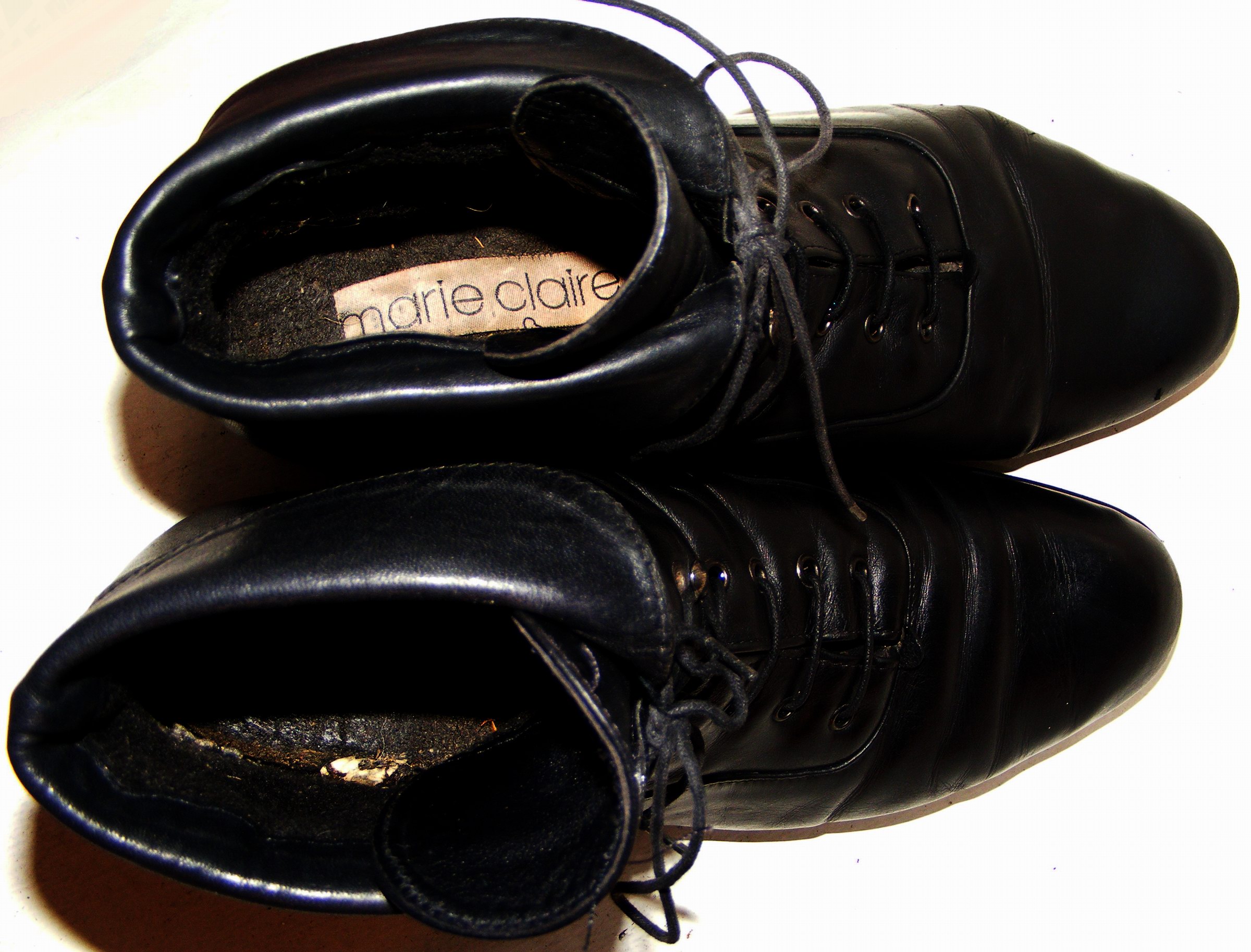 Diese Stiefel haben "erfolgreich" eine Sperrmüllpressung im gut gefüllten Schuhschrank überlebt, danach eine müllgebührenfinanzierte Stadtrundfahrt im orangen "A"-Wagen genossen, um dann auf der Müllkippe geborgen und wiederbelebt zu werden! :P