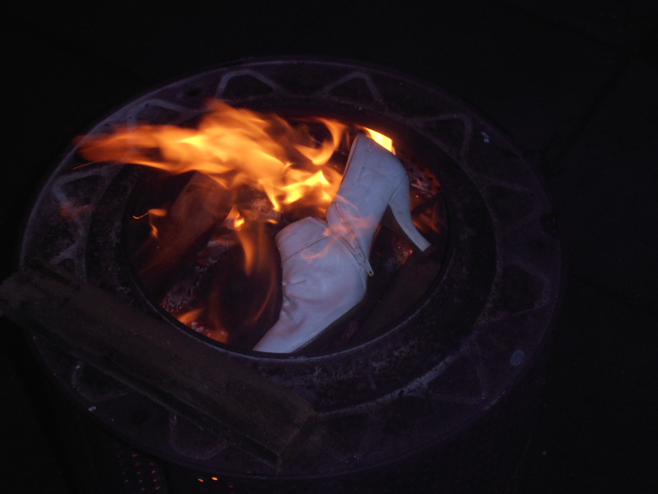 Besondes geit ist das Bild, wo der erste Schuh im Feuer liegt, aber noch nicht brennt. man könnte ihn also mit einem beherzten Griff noch aus den Flammen retten. Im nächsten Foto ist es dann aber schon zu spät und der bereits von der Hitze deformierte Schuh beginnt zu brennen. Einfach nur geil! Danke dafür und gerne mehr Heels in der Tonne