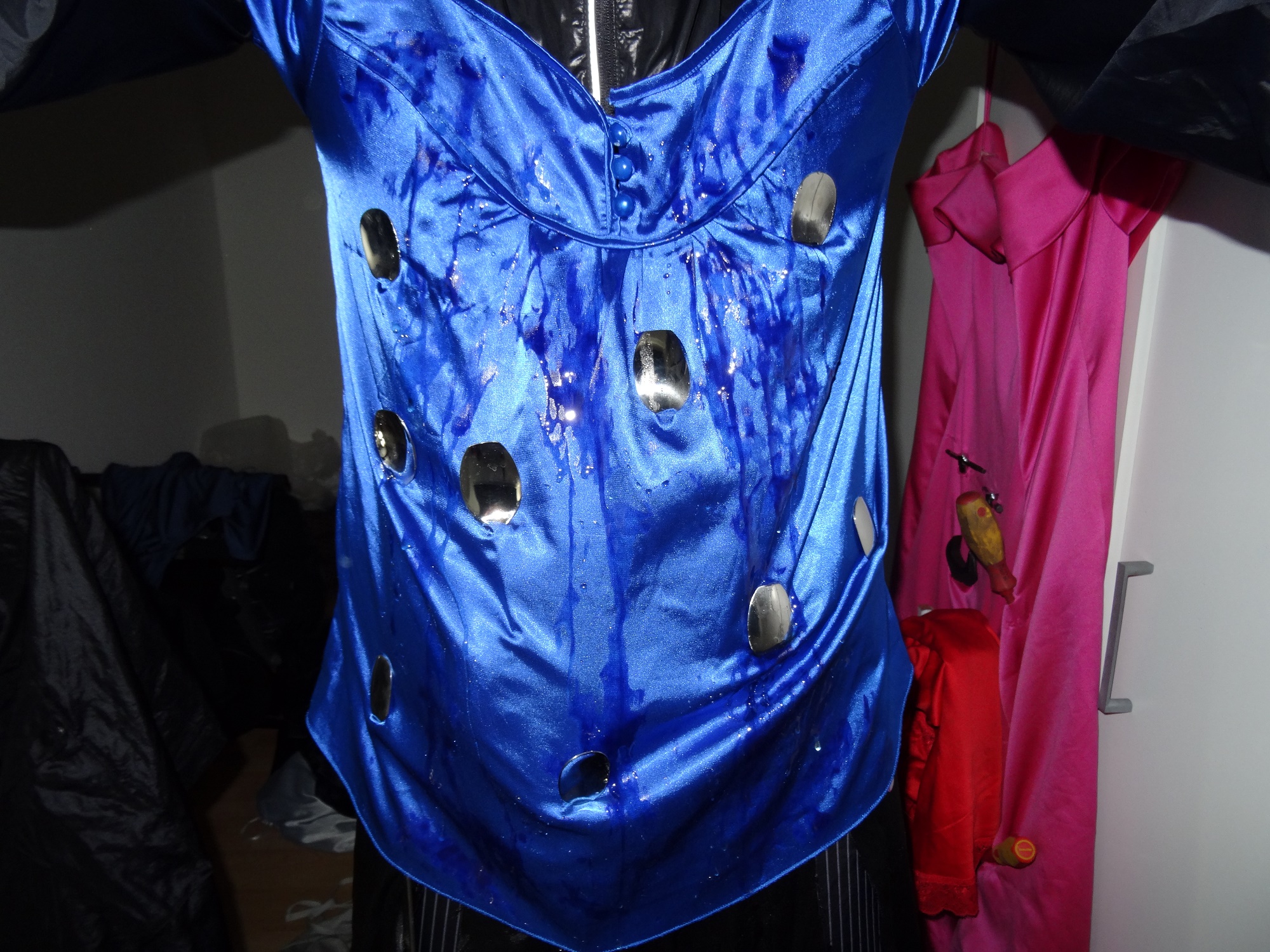 Ach nee. Den Rock kannst du noch einreisen von unten nach oben feine Streifen rings um zu. U die bluse ist iwie noch zu sauber. Zu den ganzen löffeln würde doch schoko pudding passen oder was anderes zum löffeln Honig Marmelade oder Nutella oder sonstiges... hinten kannst du die bluse ja rückenfrei schneiden