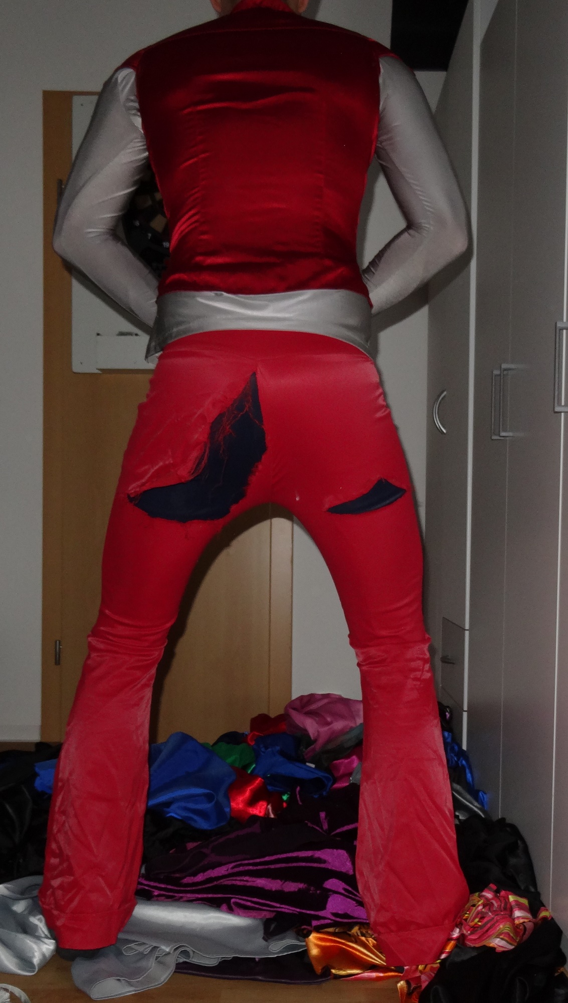 hier die rote Bluse und die Hose bzw der Rest davon. Die Hose hat meine Freundin beim Sex zerrissen, sind auch noch ne Menge Flecken dran (Muschisaft).