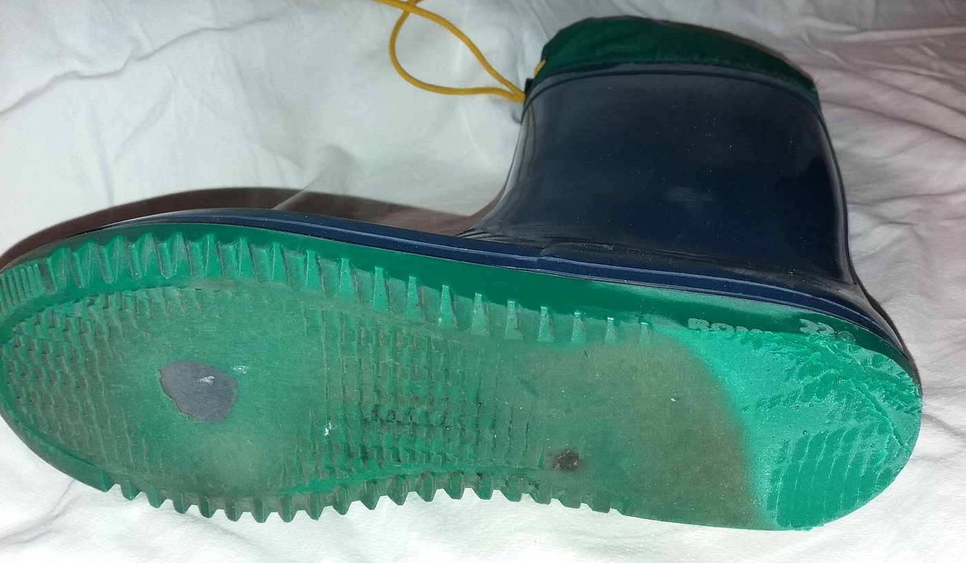 Auch eine gute Idee, zu kleine Gummistiefel zu weiten, besonders die gelben scheinen ja gut gelungen zu sein.
