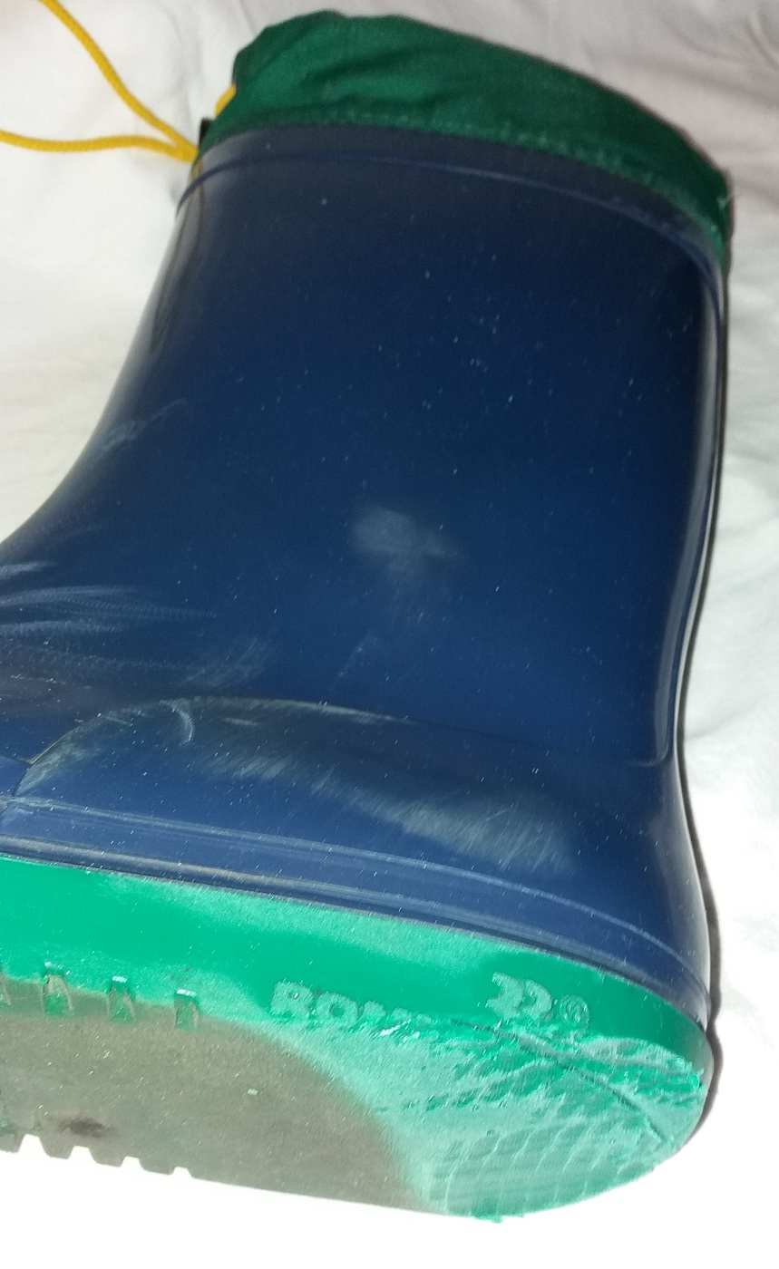 Ich habe die kaputten Gummistiefel durch zwei neue Paar Bobbies ersetzt bekommen, ein blaues, wie gehabt und mal zur Abwechslung auch ein gelbes. Die Verkäuferin hat noch flauschige Einlagen aus Lammfell jetzt für den Herbst und Winter empfohlen. Sie hat sie gleich in die gelben Bobbies eingelegt und meinte noch, dass die Einlagen gut den Fußschweiß aufnehmen und man sie deshalb nach längerem Tragen zum Auslüften besser herausnimmt. Da ich meine Bobbies nicht pflege, werde ich das bestimmt nicht machen. Vielmehr bin ich jetzt gespannt, ob sich da ein geiler Smell im Inneren der Gummistiefel entwickelt.
