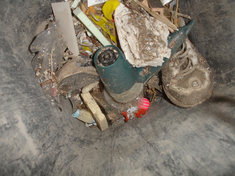 - schon teilsweise vom Müll bedeckt und leicht eingegraben