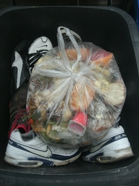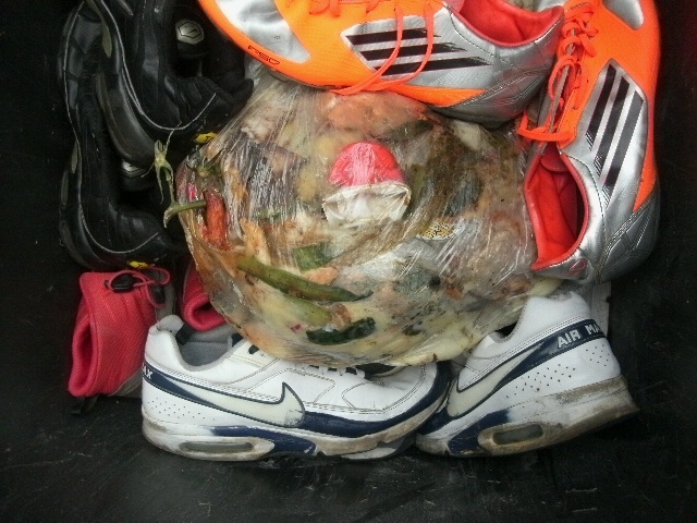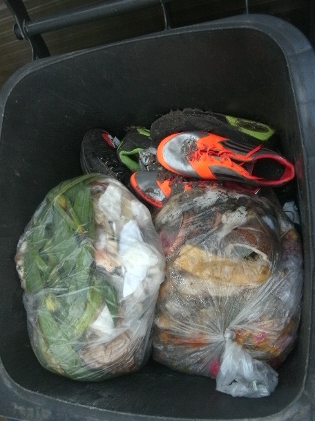 vorgestern kamen richtig geil duftende Asics in unsere Restmülltonne - auch von John. Und Laura warf noch ihr verschmähtes Pausenbrötchen drauf. :oops