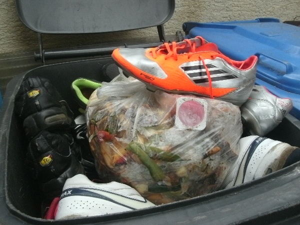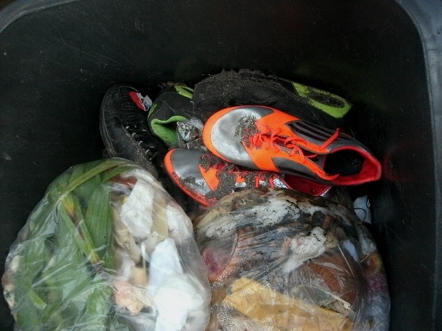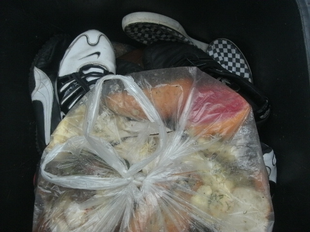 Mit Küchenabfällen bald abgedeckt, konnten die Müllschuhe nun vor sich hinrotten.