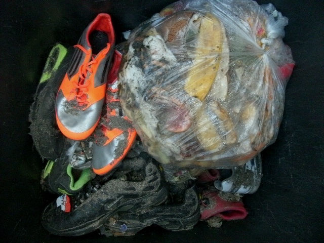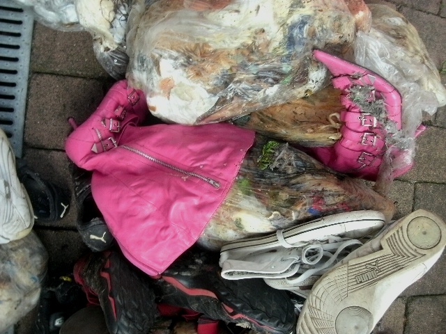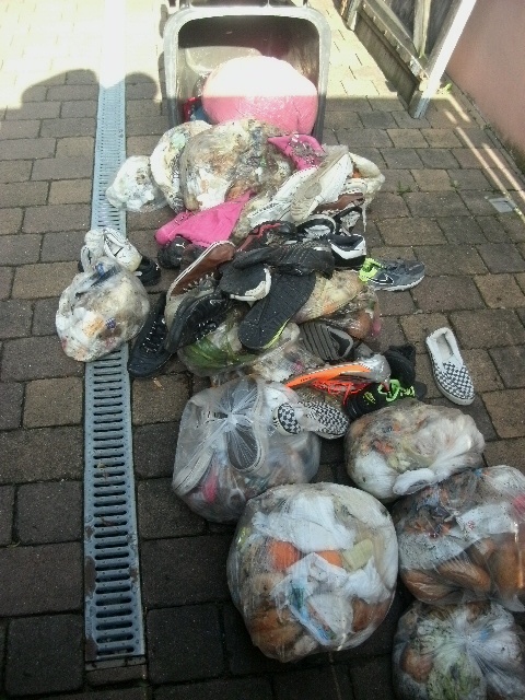 Besonders der Müll von vor zwei Wochen war schon ziemlich verrottet und hatte eine braune Farbe angenommen; bis auf die pinken Stiefel.