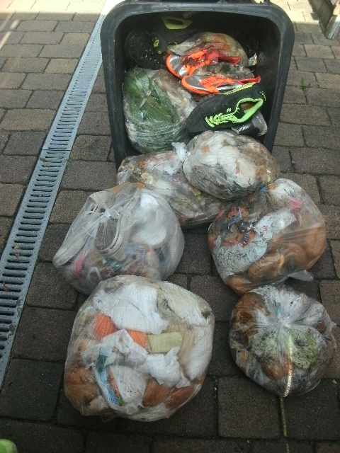 jetzt inspizierte ich mal den gesamten Tonneninhalt; - also die Müllproduktion von gut zwei Wochen: