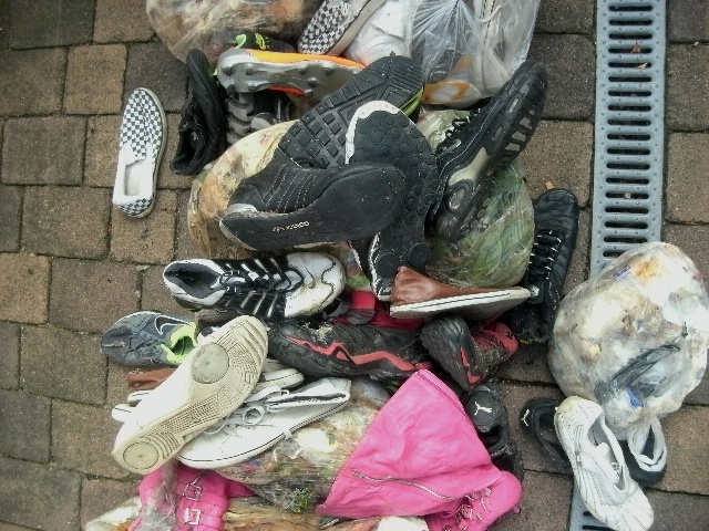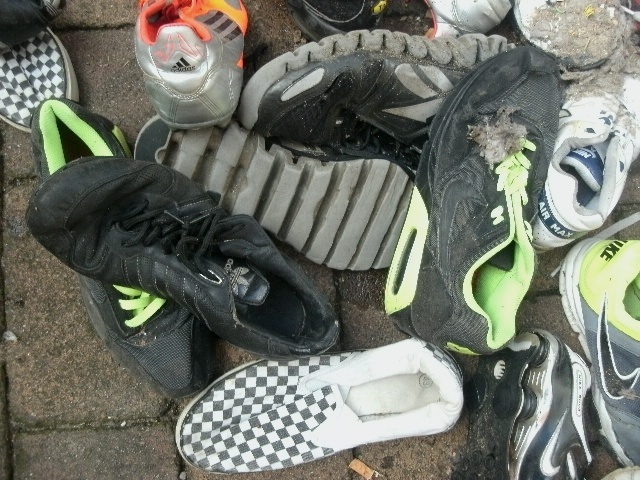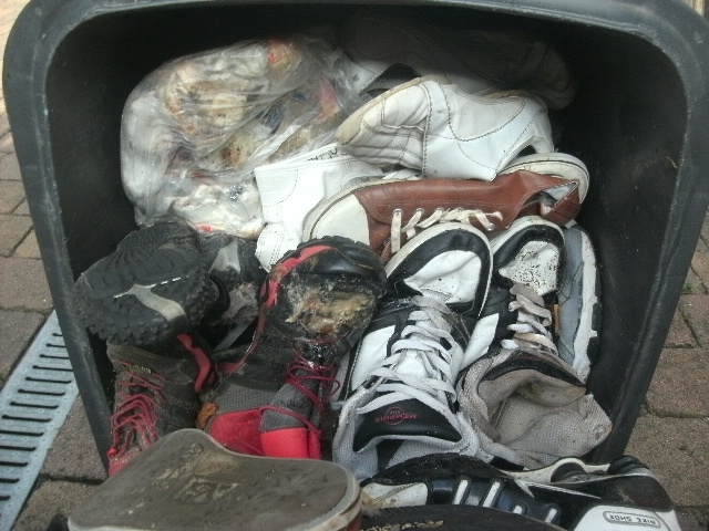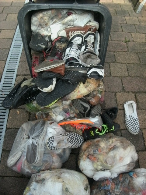 Die Schuhe wurden nochmal durchgesehen und kamen alle in die Mülltonne - wohin sie auch gehörten.