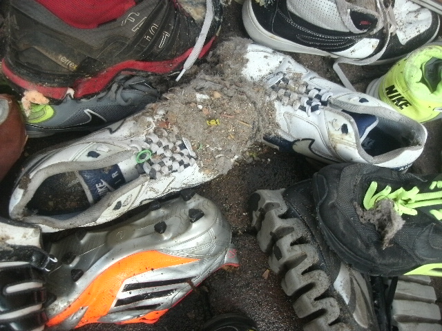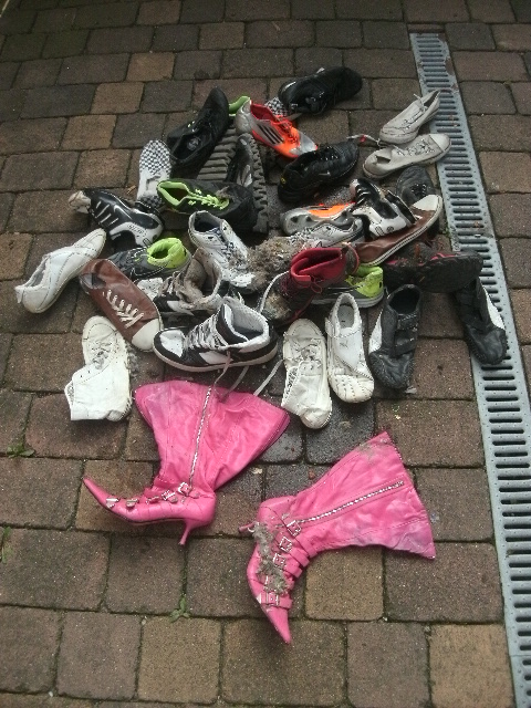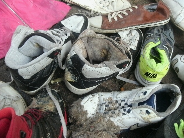Die Memphis-Stiefel und die adidas-Trekking-Stiefel hats echt bitterböse erwischt. Da klebten die alten verrottenden Essensreste dran.