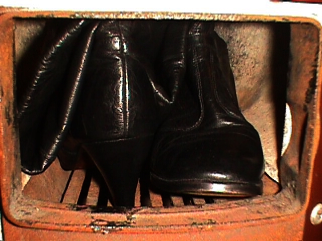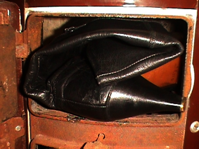 Wahrlich hatte ich immer ausreichend "Nachschub", sodaß wirklich ständig Schuhe/Stiefel griffbereit waren. Das war auch der Tatsache geschuldet, daß ich eben (Sperr-)Müllfunde von Schuhen immer säcke- bzw. kistenweise komplett mitnahm, um zu Hause in Ruhe Anzuprobieren und zu Entscheiden, was eben direkt am Fundort "auf der Straße" kaum möglich ist. Natürlich wäre ich dann "dumm" gewesen, wenn ich die Unbrauchbaren wieder zurück auf den Müll gebracht hätte - unabhängig aller fetischistischen Gefühle und Neigungen - nichts Vergleichbares brennt besser und intensiver als Lederschuhe, sie sind das pefekteste Heizmaterial für Herde und Badeöfen, haben bereits die ideale Größe, sauberer zu Lagern als Kohle, dazu praktisch noch kostenlos und bilden weniger Asche!