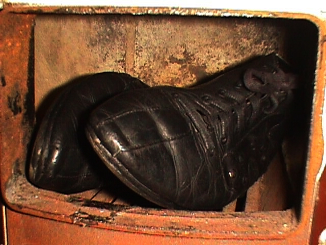 Bild Unten: Ja, ja - der liebe Kücherherd! Damals in fast jeder Wohnung zu Finden und in aller Regel machten die "Hausmänner" einen großen Bogen drumherum. Endstation für die wohl meisten Haus- und Kinderschuhe, Pumps und Sandalen.