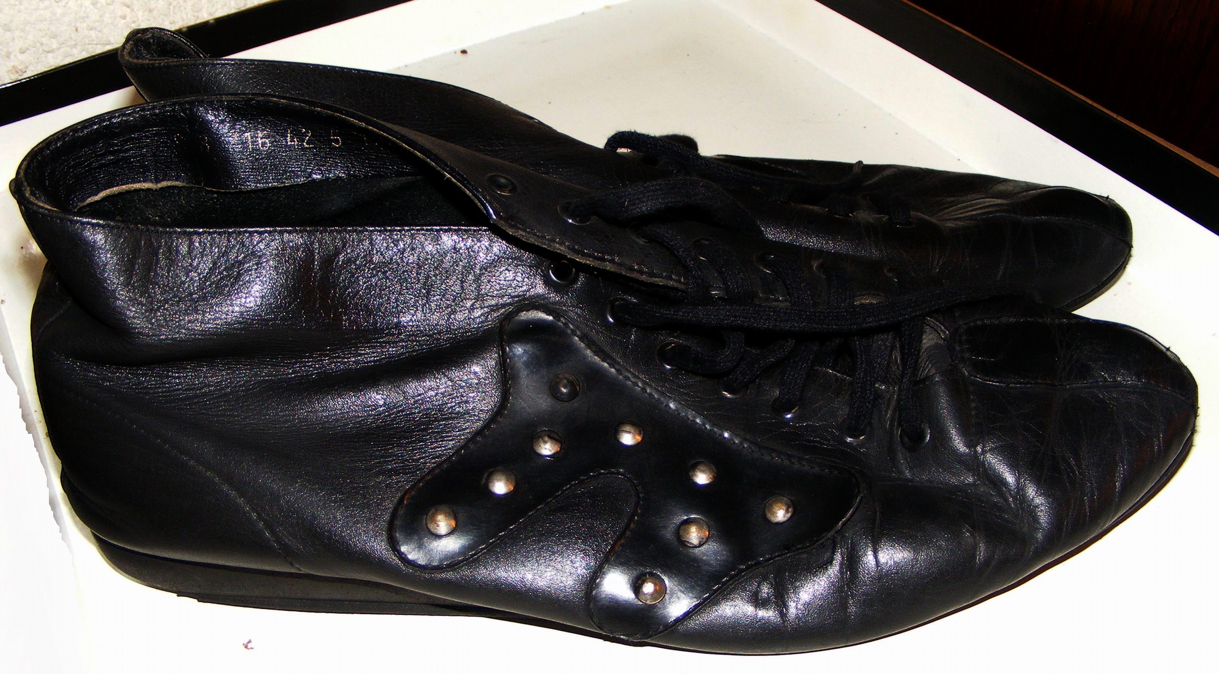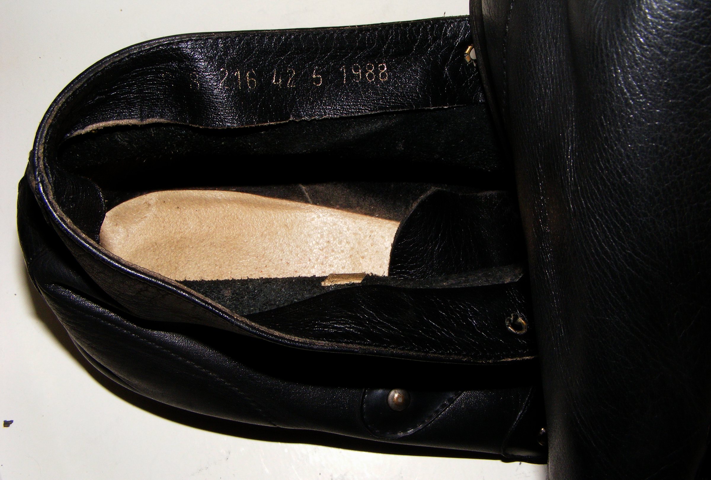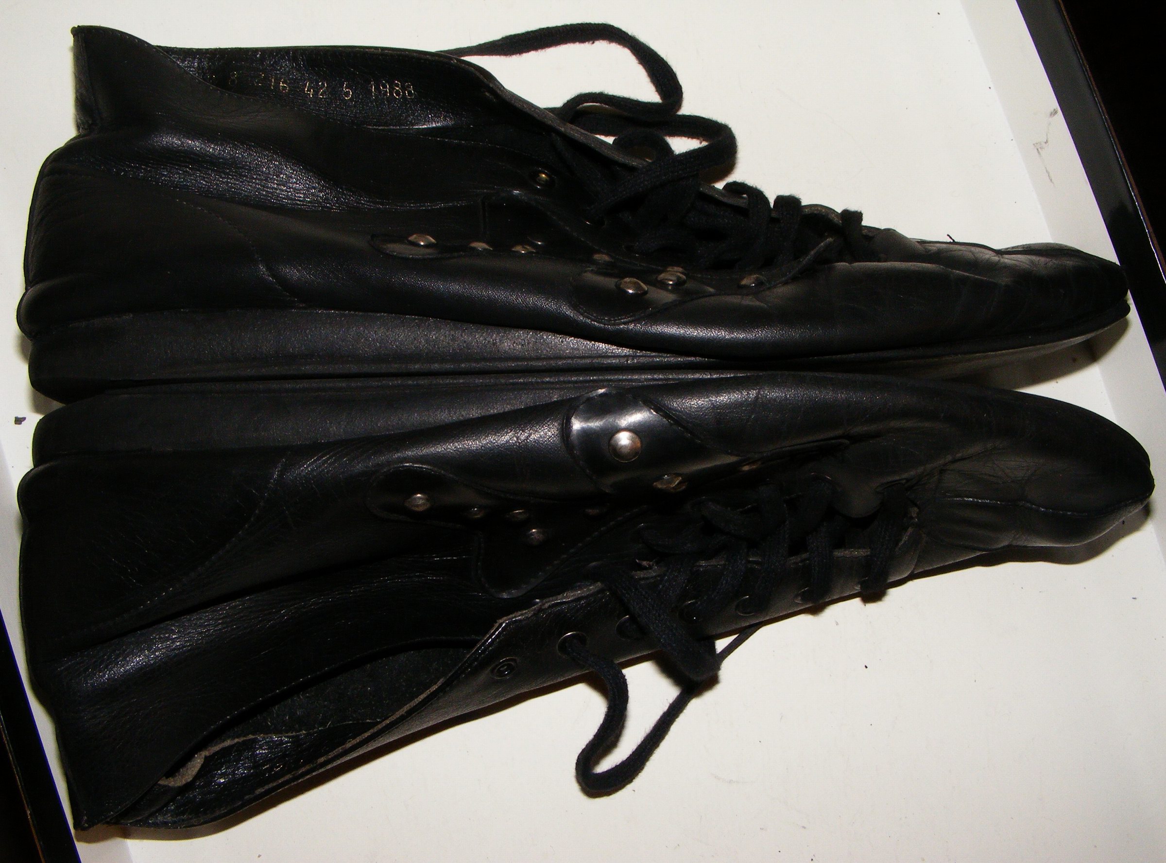 Im Januar 1993 habe ich dann noch ein drittes nahezu neuwertiges Paar erhalten, aber nur selten Getragen und im Karton eingelagert. Ich muß zugeben, ich hatte sie wirklich komplett Vergessen! Weil ich heute mal wieder etwas Zeit hatte, gemeinsam mit der NT meinen Bestand zu "Bereinigen", Einiges zu Tauschen und Überflüssiges zu Verbrennen, kamen diese Schuhe (Zenith Ungarn 9 8 216 42 5 1988) zum Vorschein.