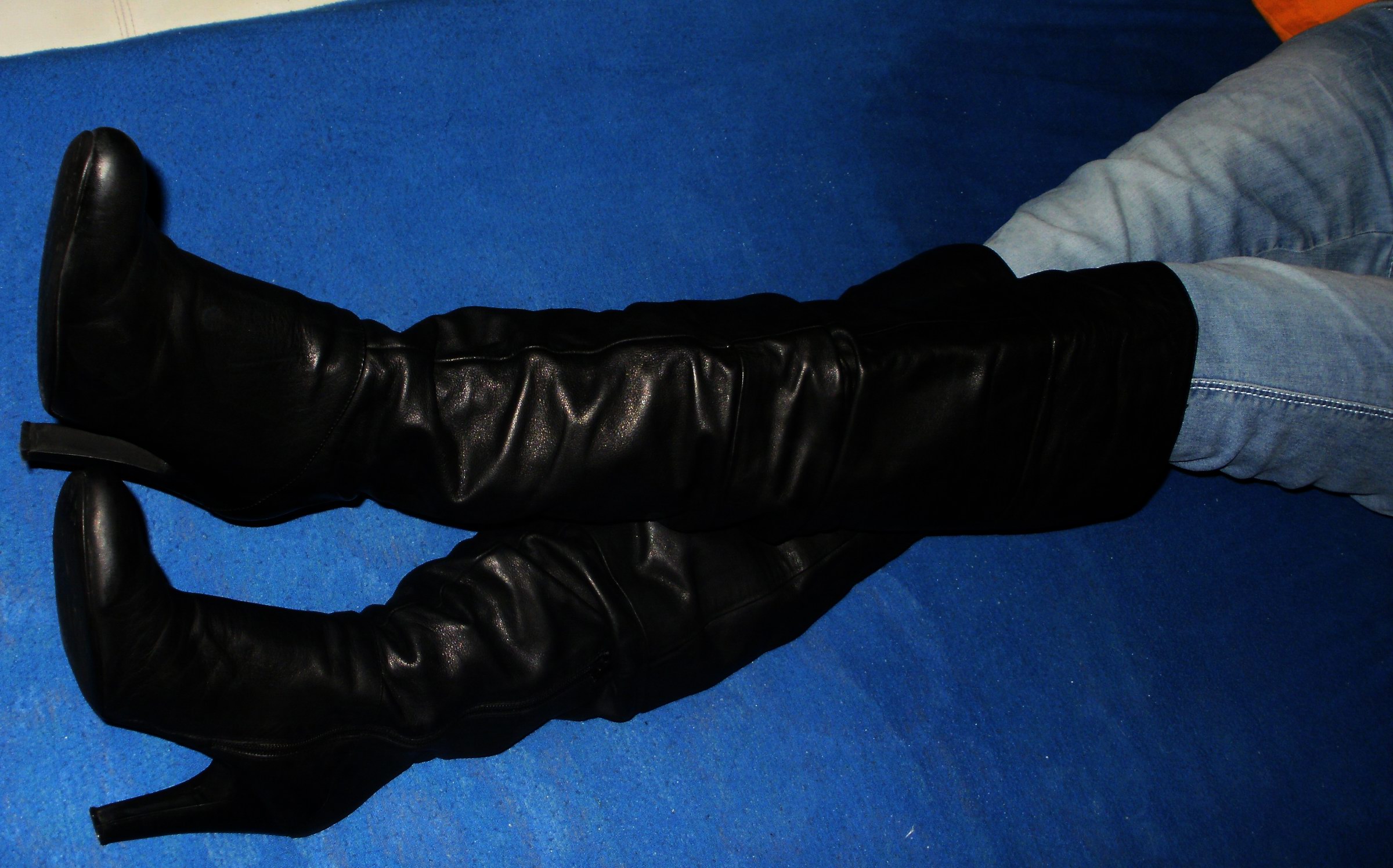 Wenn ich mit meinen schwarzen "Overknees" (ich habe mehrere Paare mit wirklich ausgewählt reizvollen Absätzen davon) allein auf dem Sofa oder im Bett liege, kann ich es nicht Lassen, die getragenen Dinger ausgiebig zu "Bewundern" - und, zuerst mal "jubele" ich ... :mrgreen: