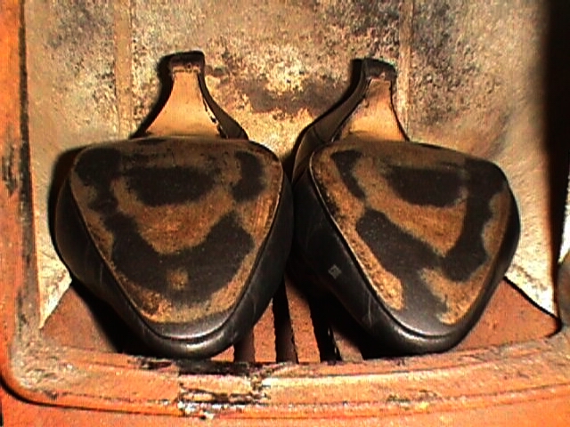 Bei diesen Reno-Pumps (23331), von mir März 2000 in einem Altschuhsammelsack gefunden und viele Jahre lang rücksichtslos "Ausgelatscht", lagen auch Diese bereits mehrfach vorm Ofen, doch mein Mann hat sie immer wieder Aufgearbeitet.