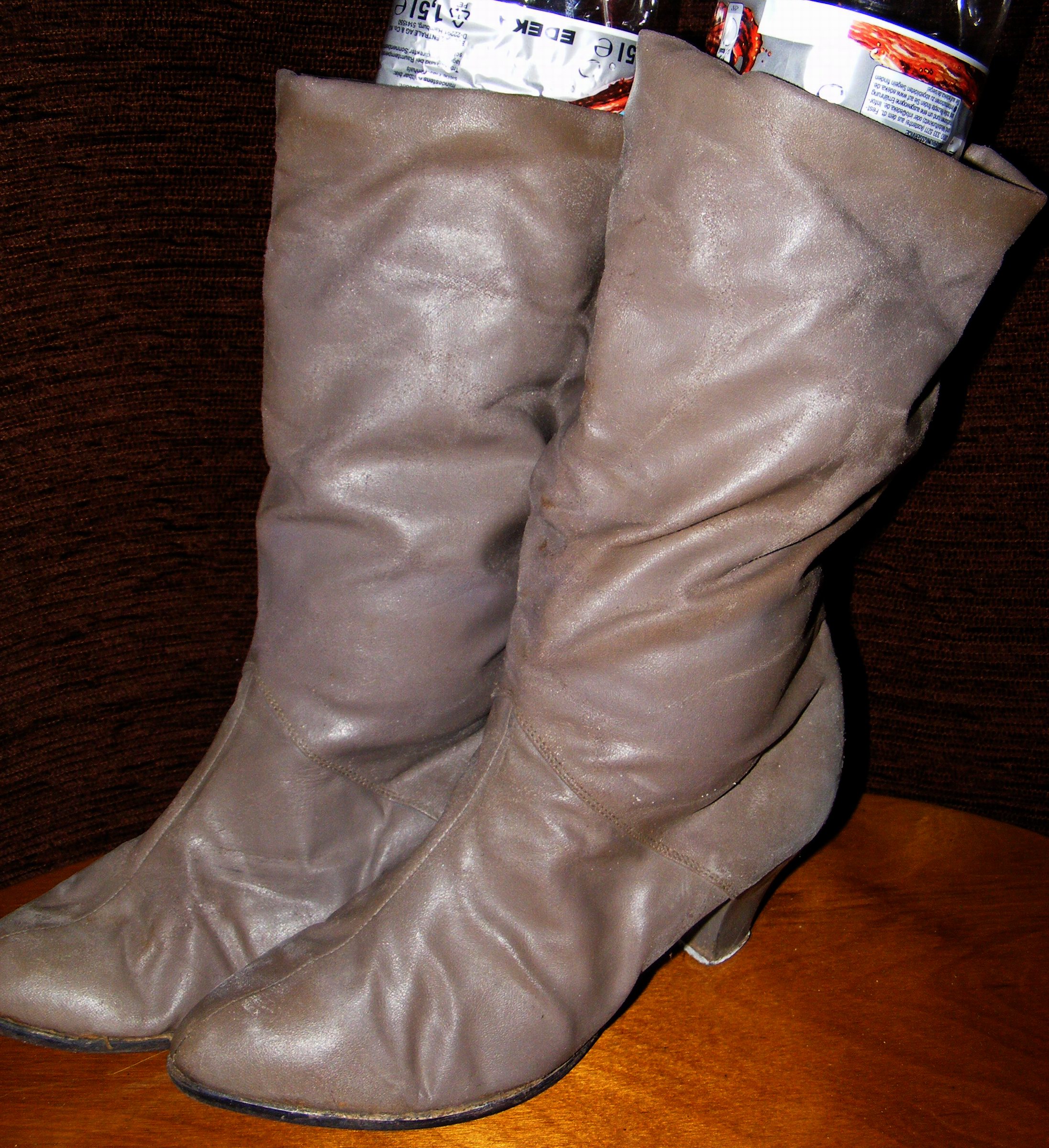 Einige längere Zeit im Garten genutzte Stiefel haben dort noch einen finalen "Abschuß" durch meinen Mann erhalten, bis dann endgültig Alle mein Haus oder die Gartenlaube durch den Schornstein verlassen haben. Besonders "Verschlammte" haben wir auch manchmal gleich ins Gartenfeuer geworfen.
