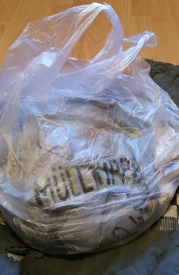 Da sie letzte Woche regelrecht übergossen wurde mit Altöl(als ich sie trug), musste ich sie nun 3 mal waschen und es ging noch immer nicht alles raus