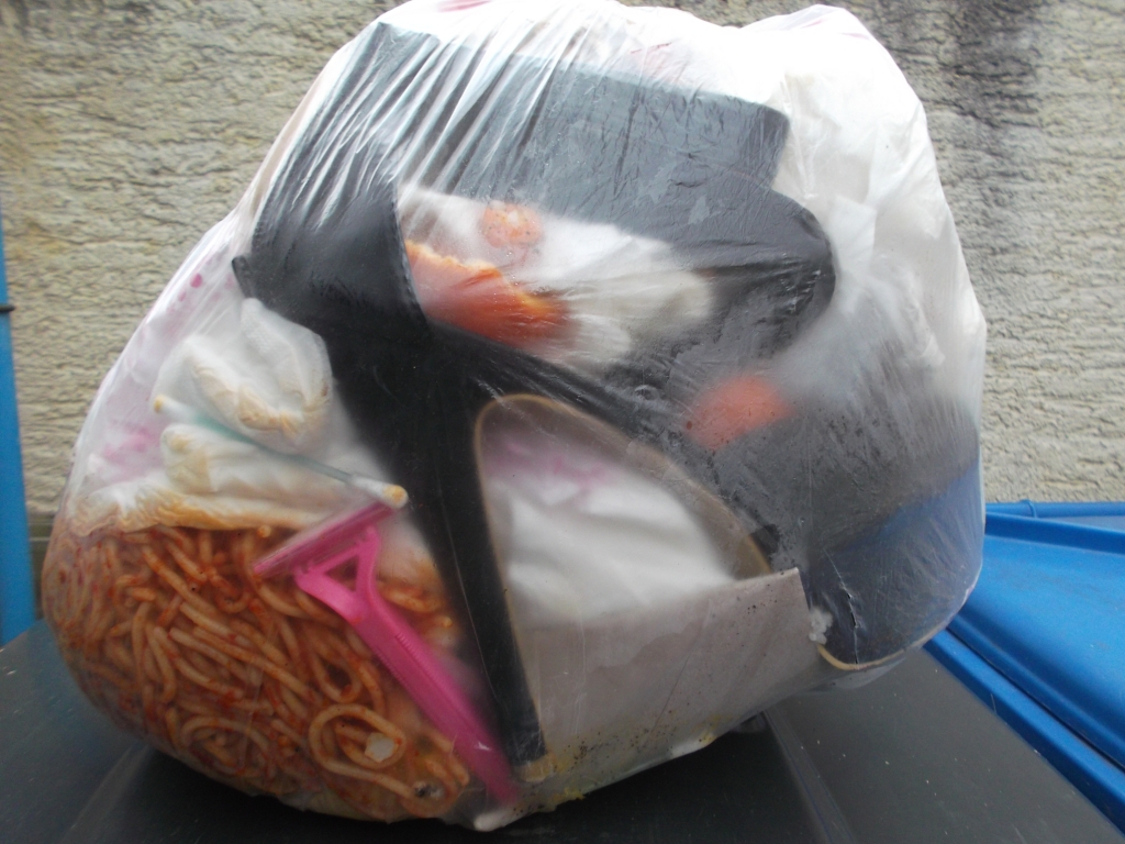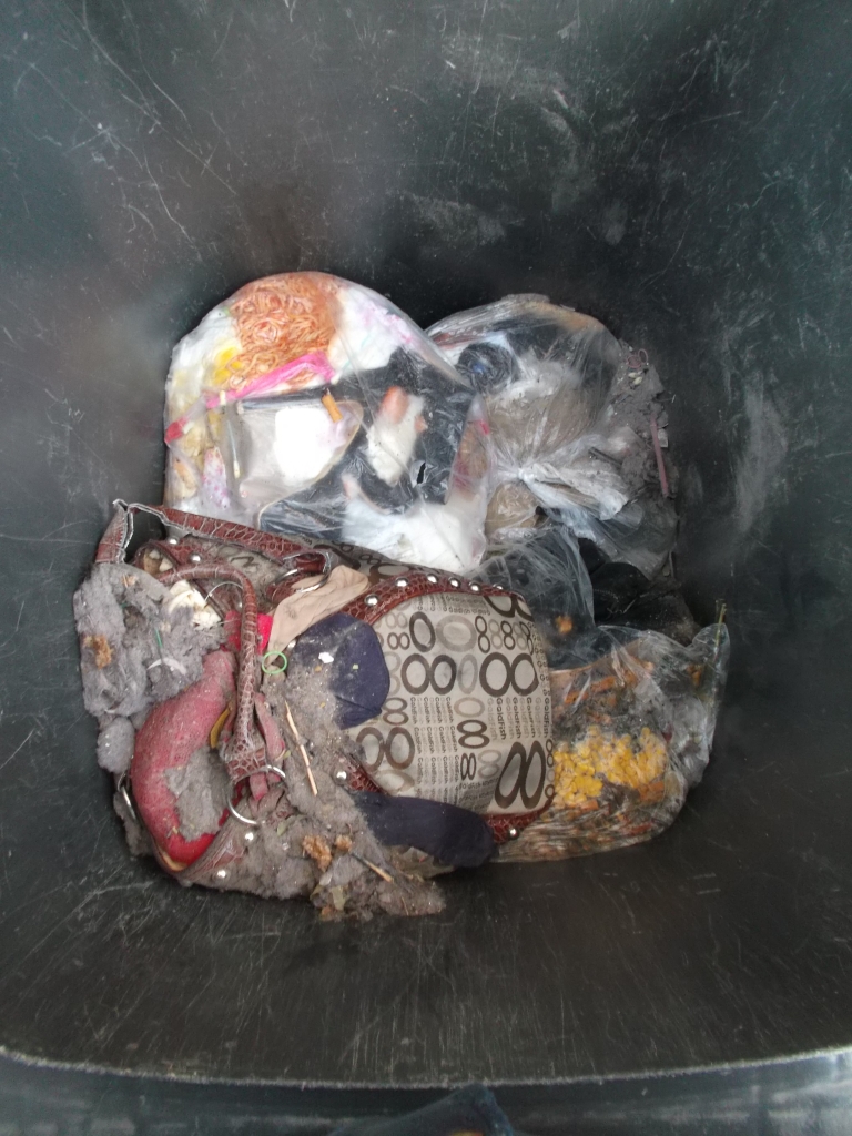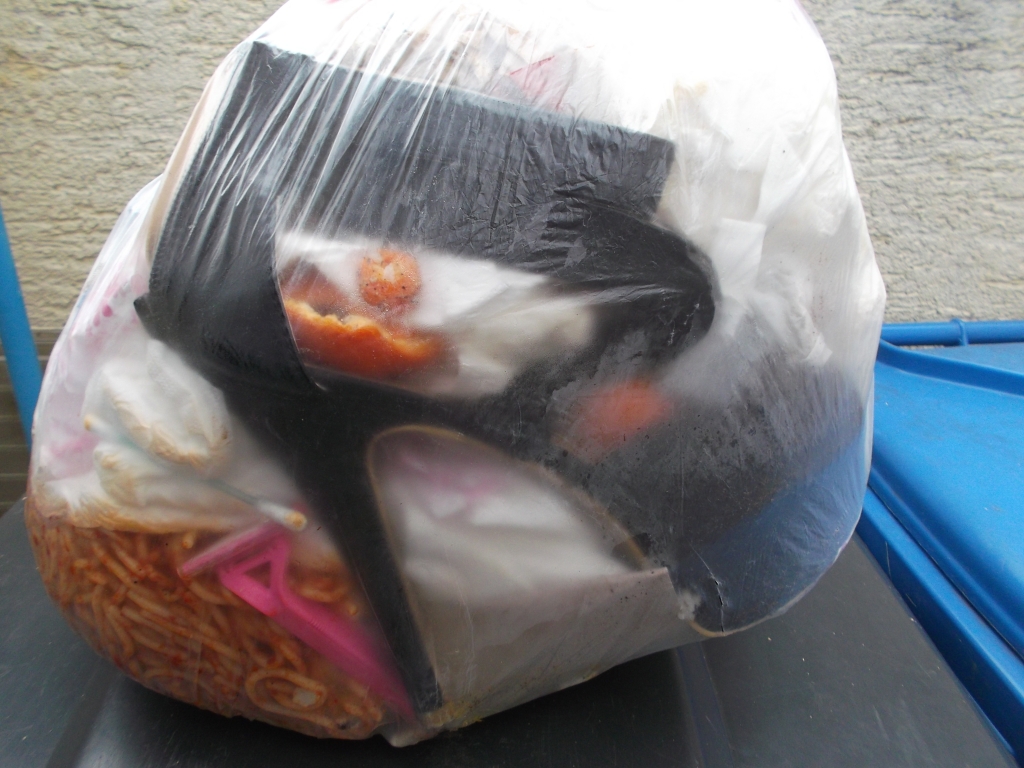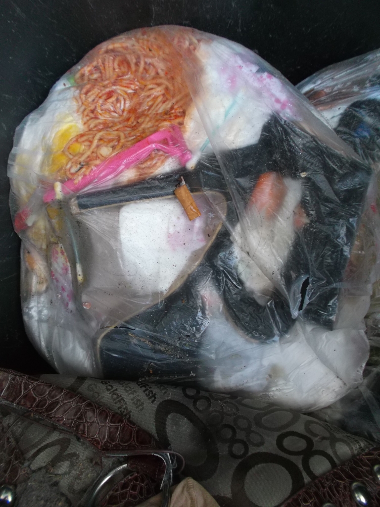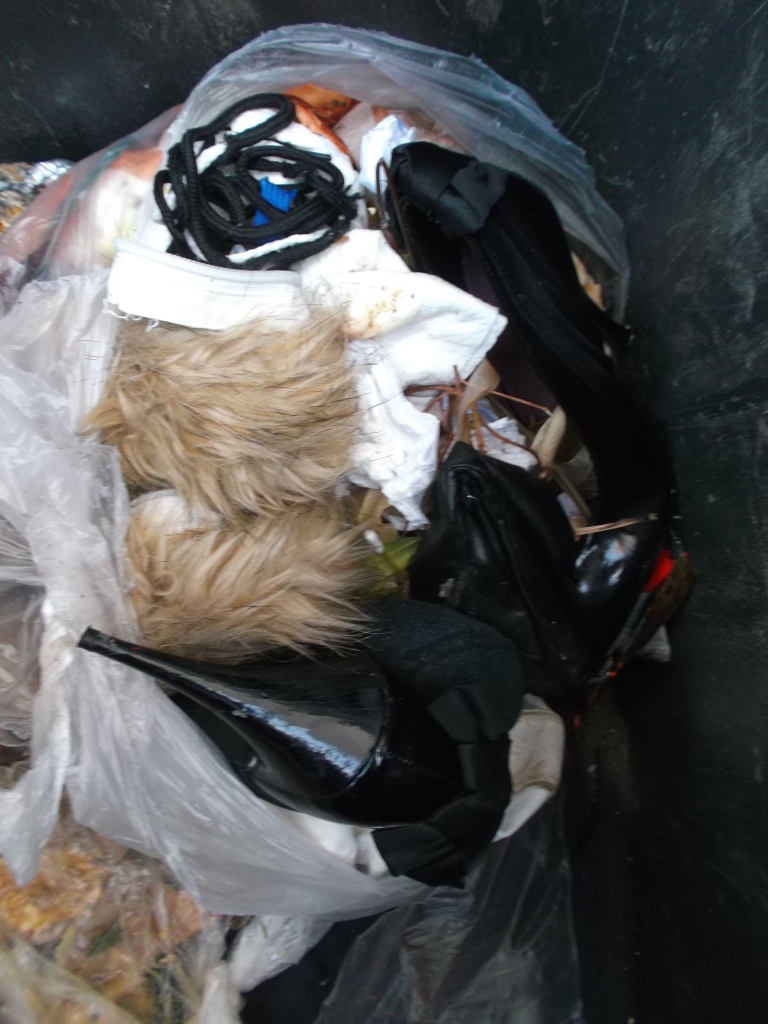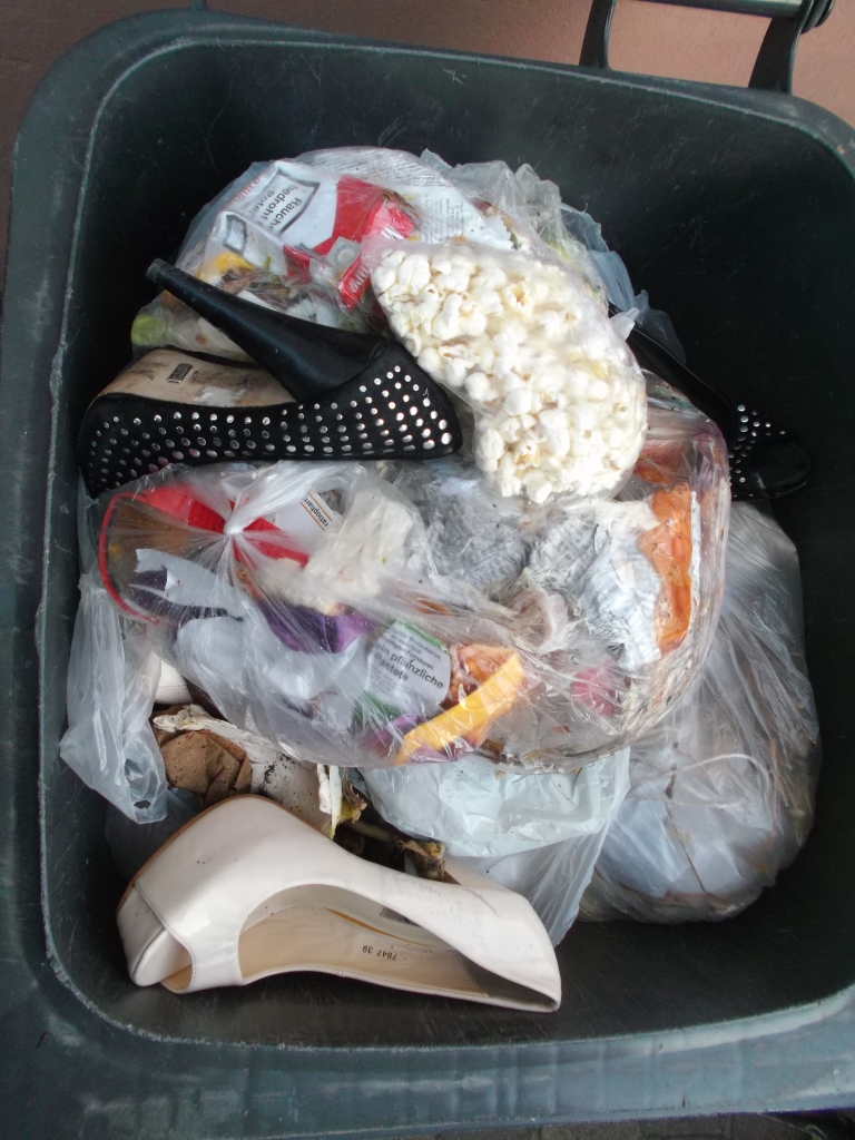 Erfreulich, dass wenigstens dieser Müllbeutel "sicher" in der Mülltonne lag, denn ich befürchtete schon sein Aufreißen durch die vielen Heels.