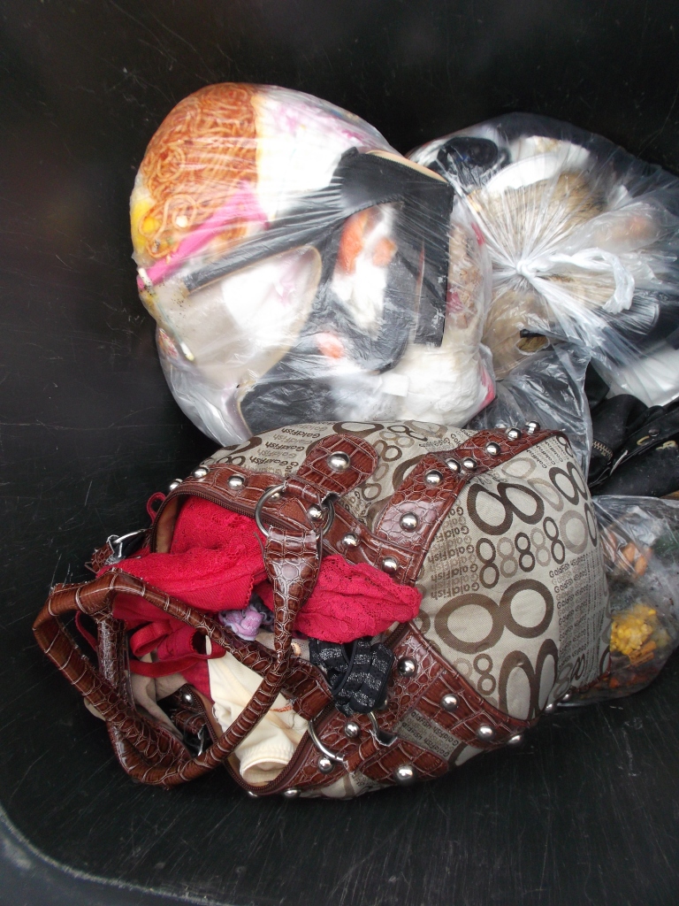 Eine Handtasche als Mülltüte "endgenutzt"! Aber was für ein geiler sexy "Restmüll" da von Tamara reingestopft wurde!!