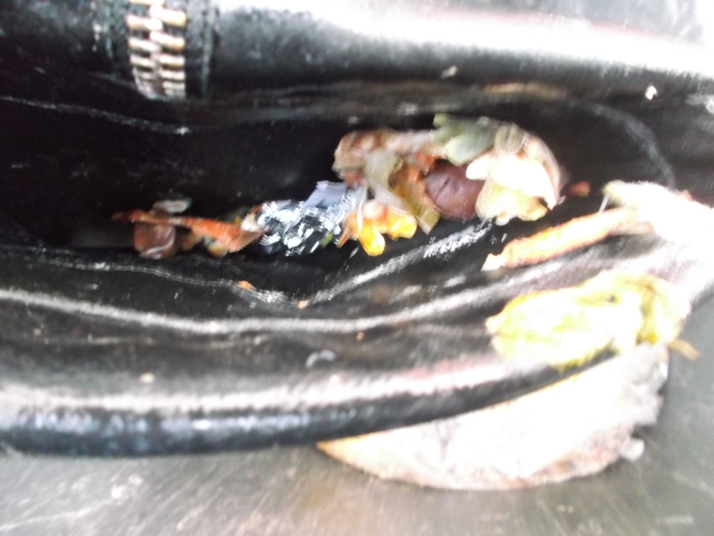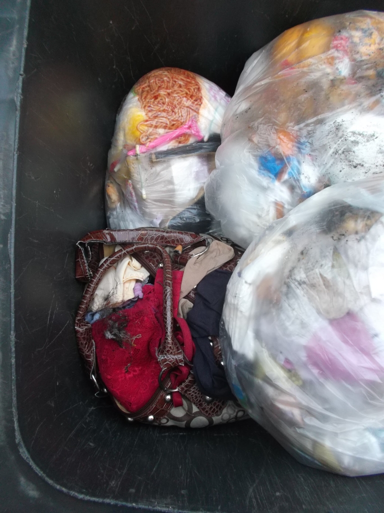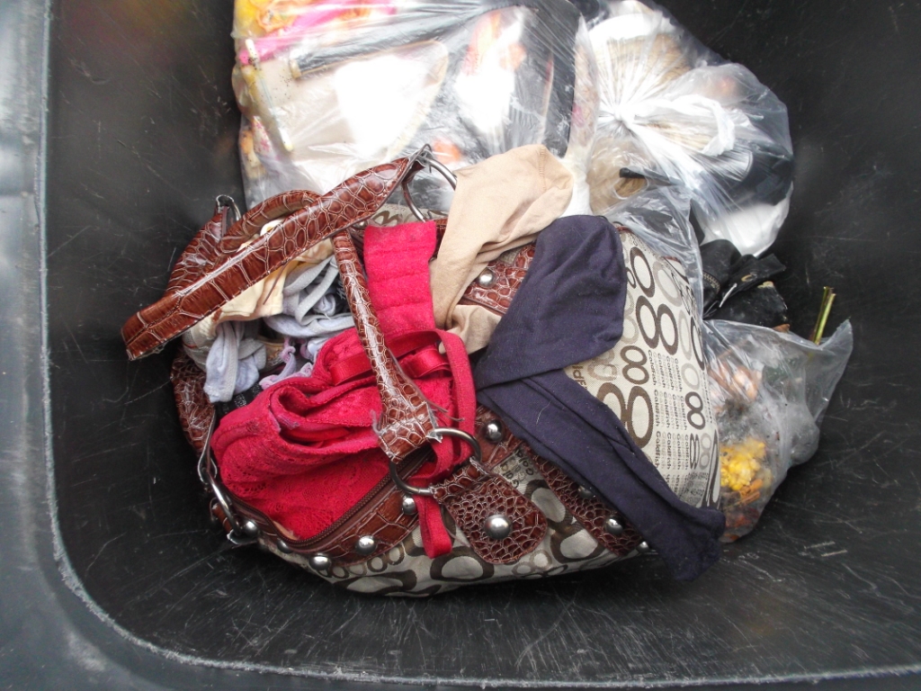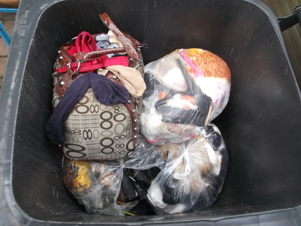 Ich konnte mich geradeso noch beherrschen und stellte die Handtasche wieder in die Mülltonne, wo sie "hingehörte".